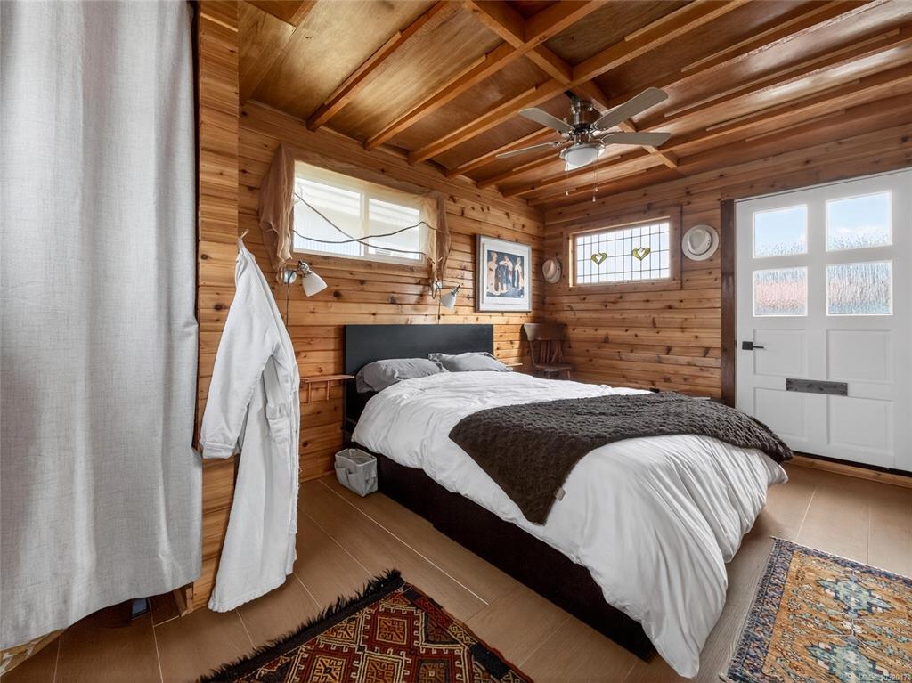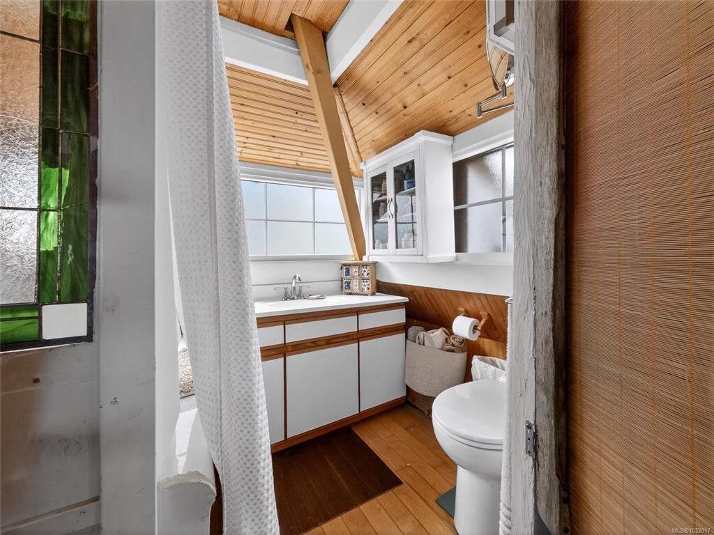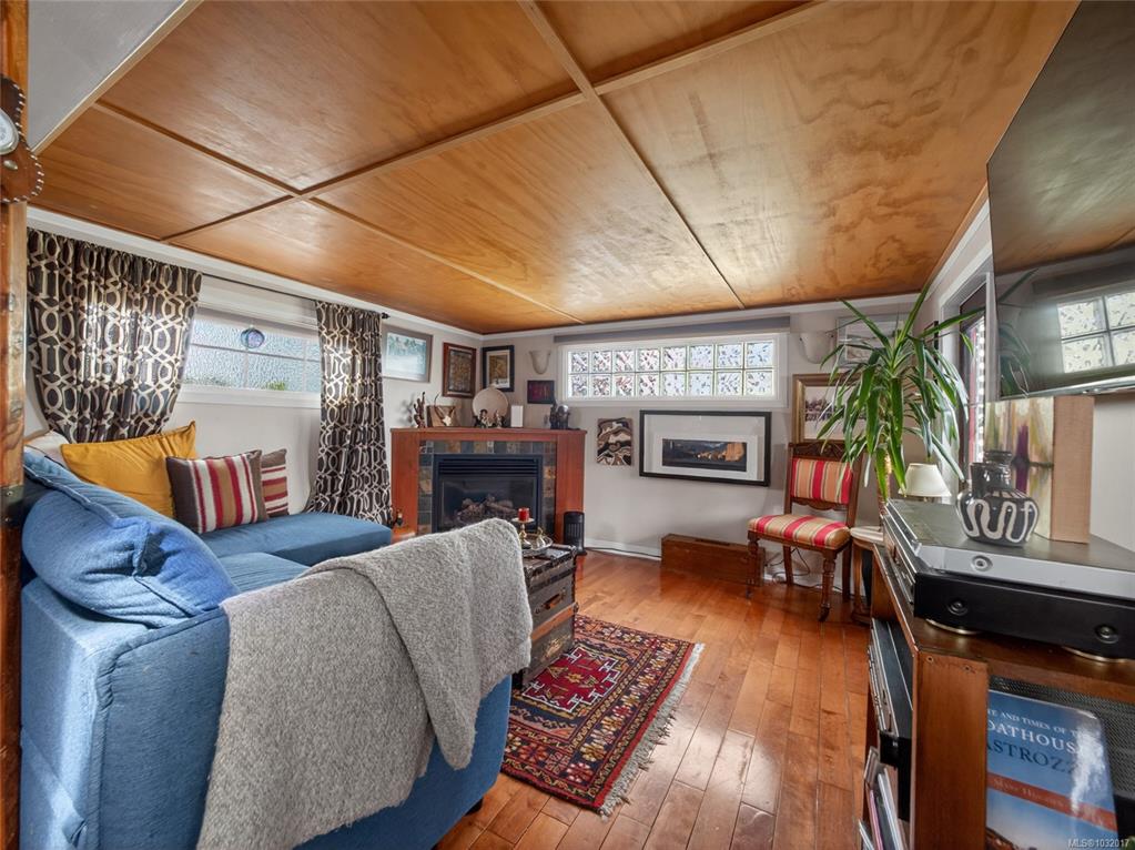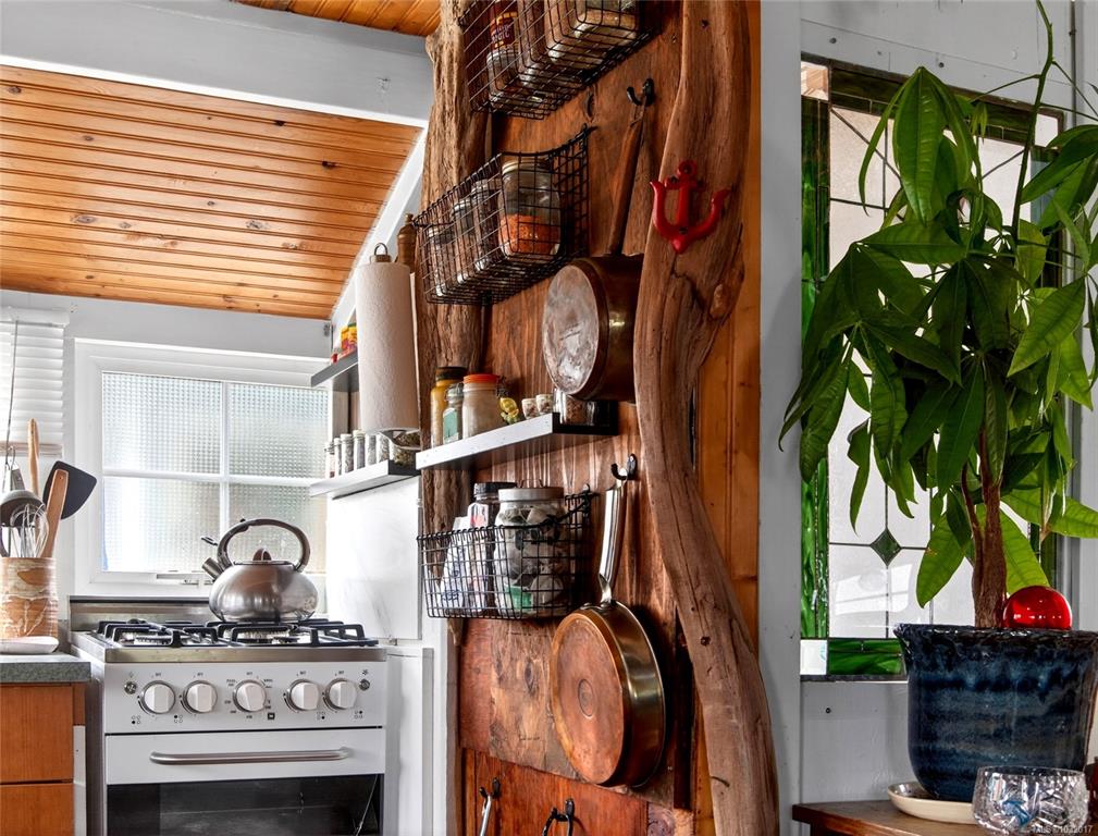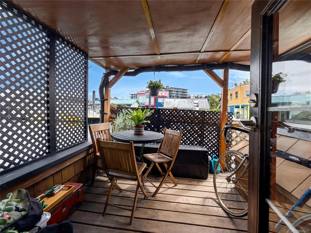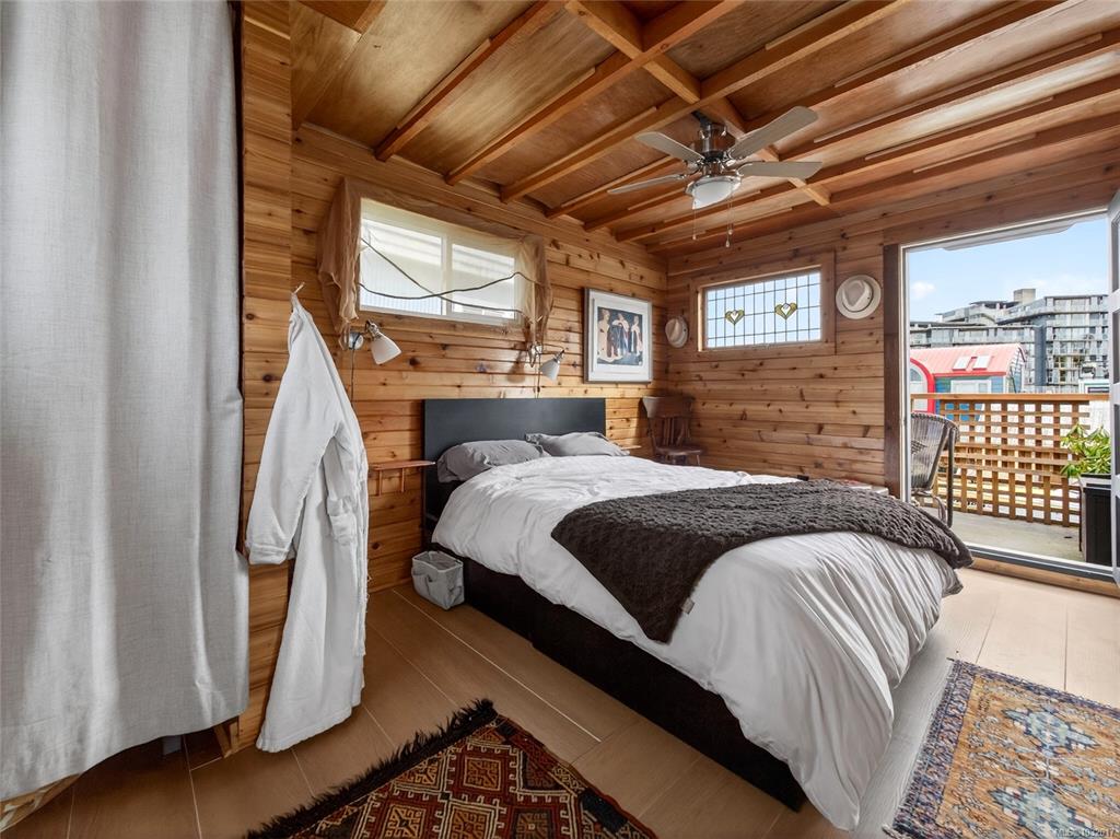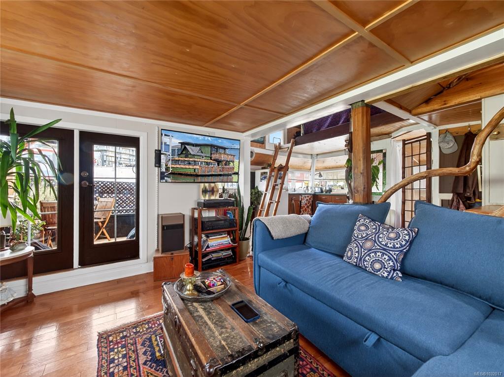 Zigguratus "Ziggy"— Fisherman's Wharf's most iconic float home. Copper roof & cedar shingles patina beautifully in the coastal air. 2 levels: open main floor with full kitchen, dining area & living room with wrap-around windows & French doors to a deck/kayak launch platform. A separate loft from the main floor for reading and/or storage. Updated 4-pc bath (tub, new macerating toilet 2026, updated plumbing 2022/23). Loft leads to 2rd-floor bedroom w/ private balcony. Propane on-demand HW, WETT fireplace, 30A...