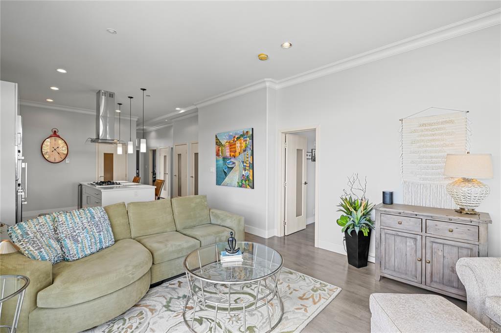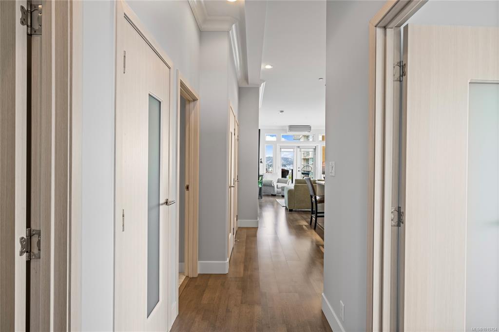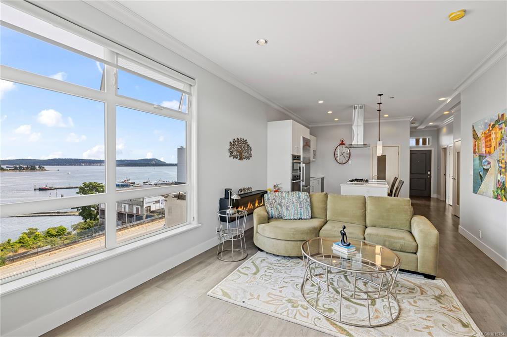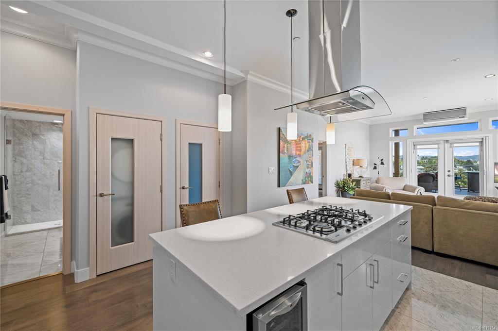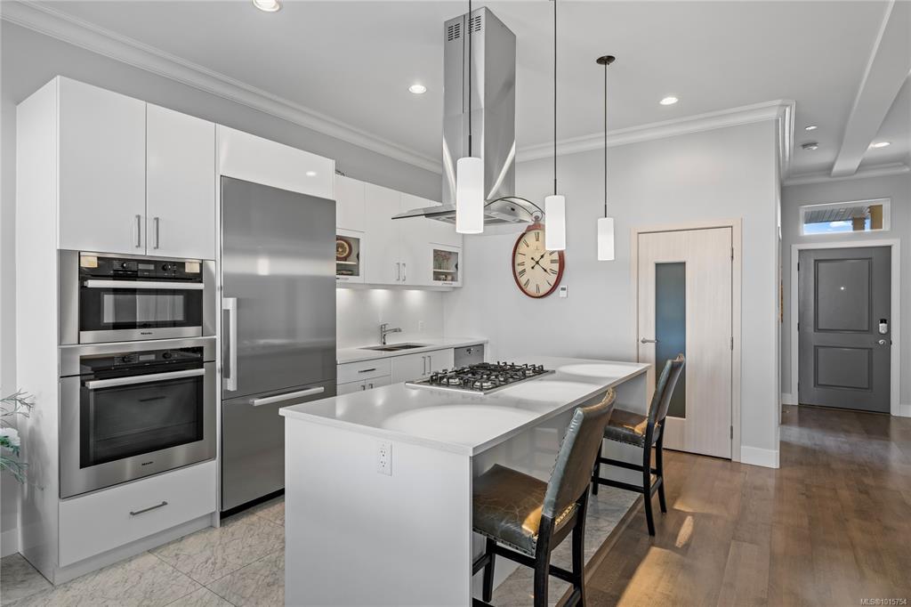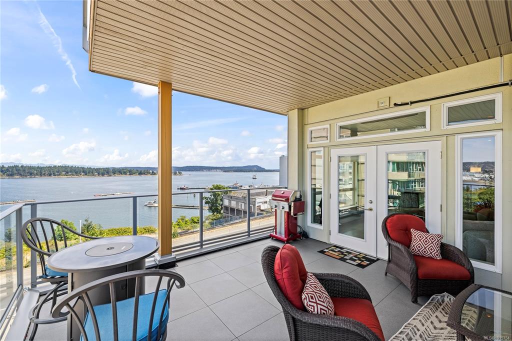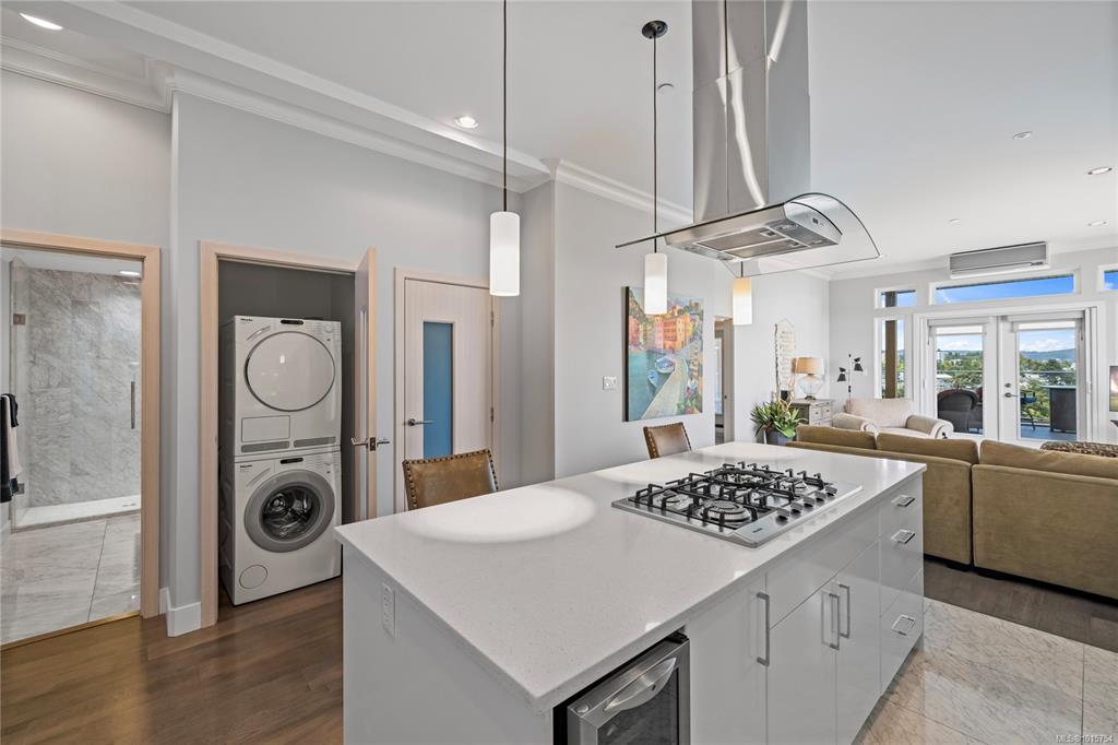 Located just steps from Nanaimo’s waterfront & vibrant downtown core, Unit 404 at the Aqua Residences offers the ultimate in West Coast living. This luxurious 3-bedroom, 2-bathroom corner unit is filled w/ natural light & features a contemporary open layout, perfect for entertaining or quiet nights at home. The chef’s kitchen boasts quartz countertops, soft-close cabinetry, a walk-in pantry & a premium Miele appliance package. Both the living room & primary bedroom open onto a large, covered patio with sens...