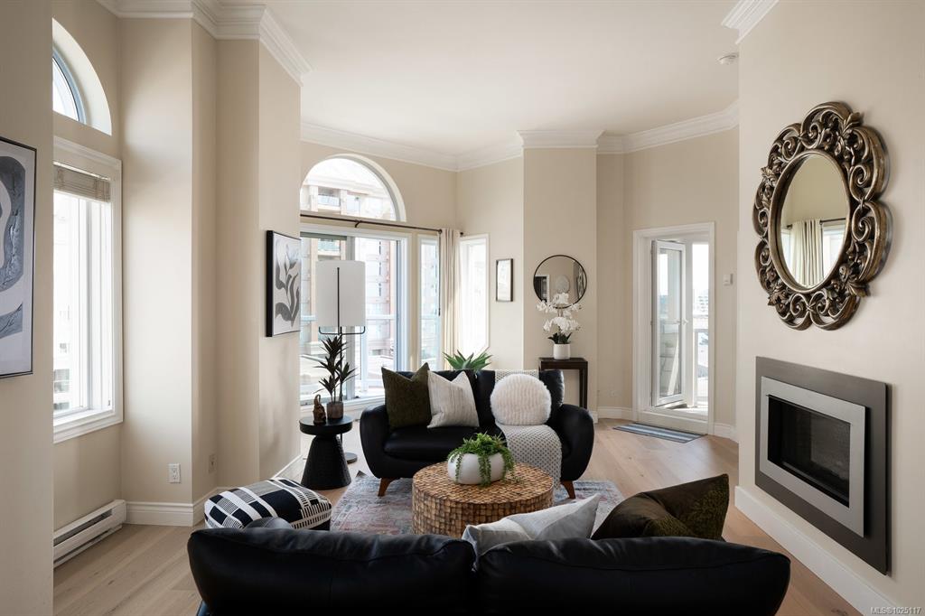 Soaring 11ft ceilings set the tone for this chic & spacious Corner Penthouse in prestigious Royal Quays, located in the heart of the Songhees. With 1,572 sqft of updated living space, this 2bed, 2bath home blends style & comfort w/Ocean glimpses w/float planes & kayaks passing by & downtown lights sparkling at night. A cozy gas fireplace warms the winters & 4 balconies invite you to soak in the surroundings year-round. The ideal layout places the bdrms on opposite sides of the condo, offering both privacy &...