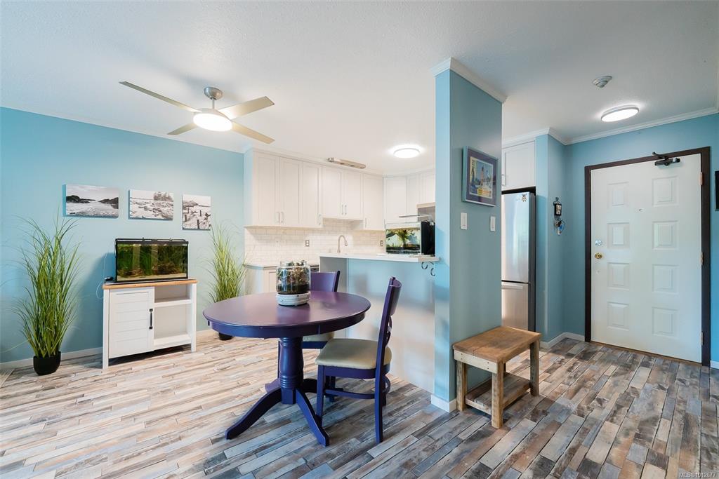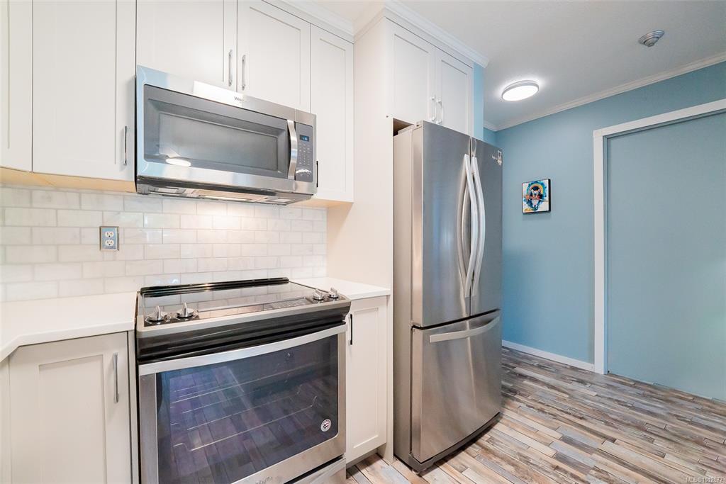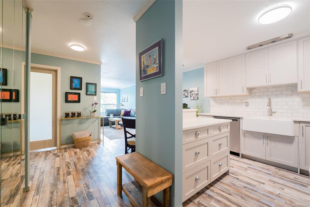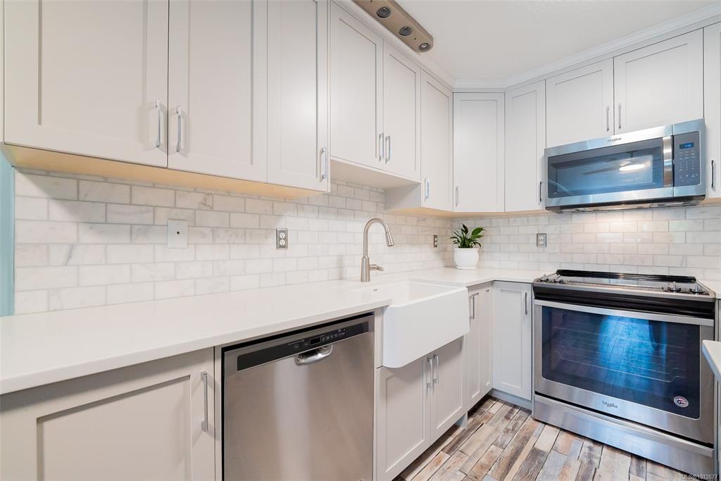 Cute, cozy and convenient 1-bedroom condo 2 minutes away from the waterfront walkway and within walking distance to Maffeo Sutton Park and downtown. The unit has been extensively updated throughout. The kitchen features four stainless steel appliances, island with eating bar, stylish backsplash, and farmhouse sink. The spacious living room has a wall of built-in cabinets and access to a covered deck that even has a view of the ocean. There is a spacious bedroom, four-piece bathroom with stacking washer and ...