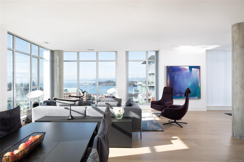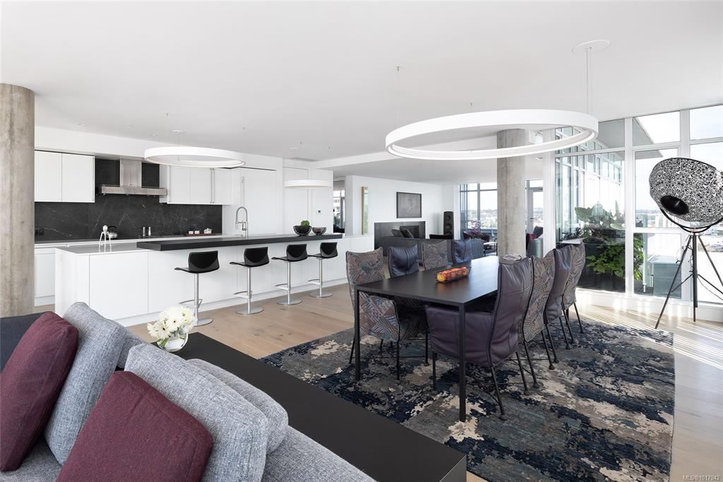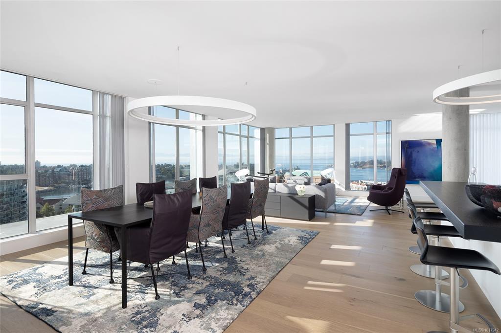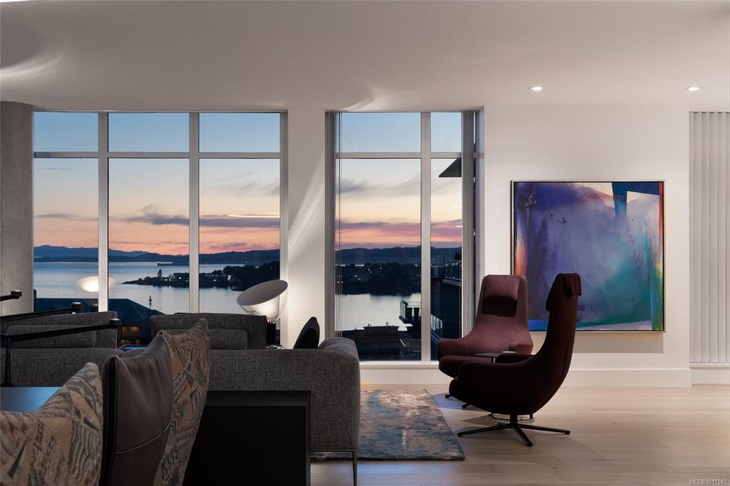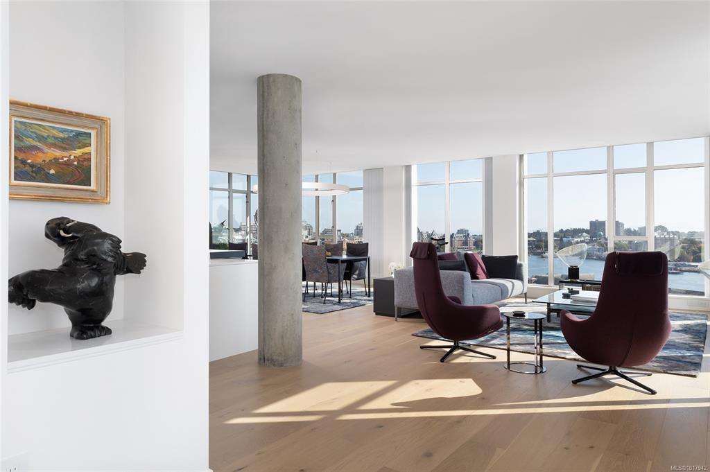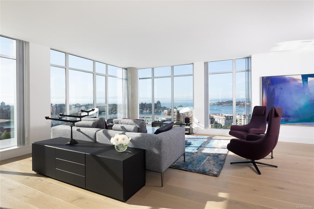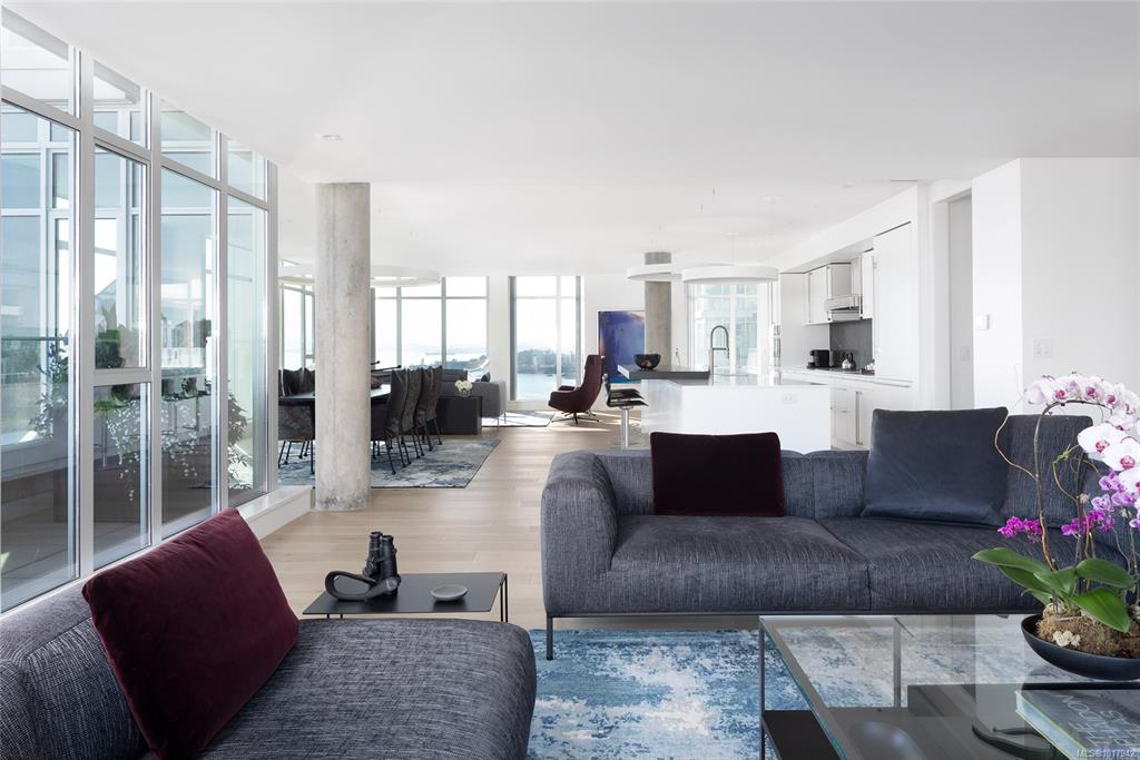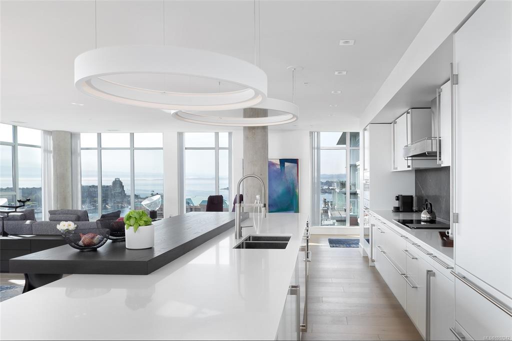 Perched high in one of Victoria’s most prestigious buildings, this exceptional 4,234 sq. ft. penthouse offers unparalleled luxury and panoramic views of the Inner Harbour, Olympic Mountains, Port Angeles, and Mt. Baker. Spanning East, South, and West exposures, it’s flooded with natural light through expansive windows. Fully renovated in 2022, the home combines timeless elegance with modern sophistication. The open-concept design features a chef-inspired kitchen with butler’s pantry, engineered flooring, , ...