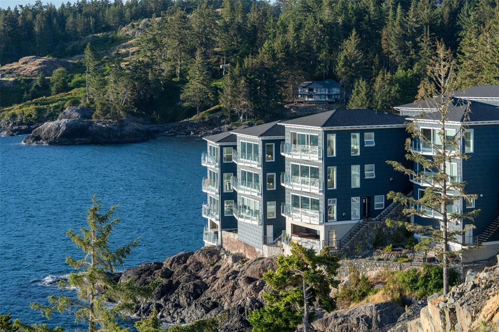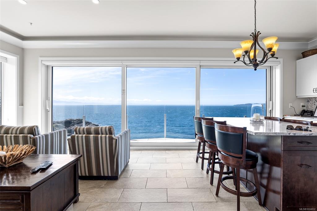 Immerse yourself in coastal luxury at this stunning south-west facing SookePoint Cottage, perched above a vibrant, active marine panorama. Revel in the elegant open-concept living and kitchen area, framed by an expansive tri-panel sliding glass wall that invites uninterrupted views toward the Olympic Mountains, the vast Pacific, and the picturesque Sooke Hills. This exquisitely furnished and fully equipped two-bedroom, two-bathroom waterfront haven spans 1035 square feet, featuring Insulated Concrete Form (...