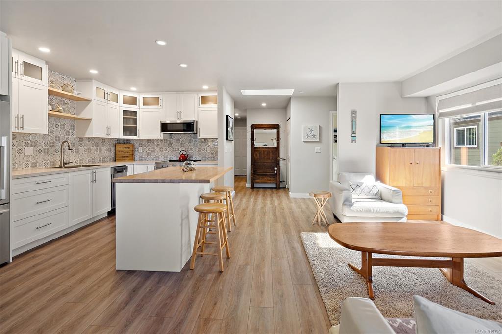 Beautifully renovated in 2021, this 2 bed, 2 bath home is located on a quiet street in the highly desirable Sidney by the Sea. Inside, you’ll love the fabulous open kitchen with an eat up island, Crisp white cabinetry, backsplash, eating nook, SS appliances and more! Renovated bathroom, paint and vinyl flooring. The living area offers a lovely electric fireplace for those cozy winter evenings. Spacious primary bedroom with a 3 piece ensuite and access to the patio. The second bedroom could also be used as ...
