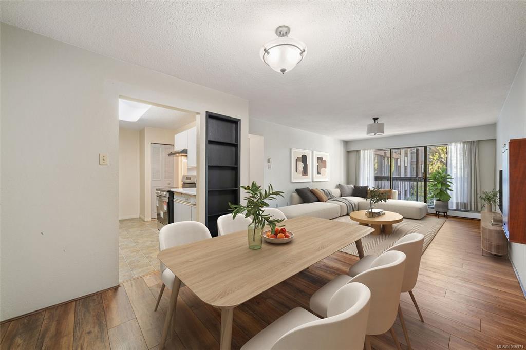 Bright and inviting 1-bedroom condo with office nook and exceptional amenities, located in one of the city’s most sought-after student-friendly areas close to major bus routes to UVIC & Downtown Victoria. Flow-through Kitchen & dining space, and spacious living room opening onto a covered balcony framed by mature trees with a view of the tennis courts. Oversized bedroom features built-ins, perfect for a work-from-home setup or the ultimate walk-in closet. Recent updates include: Acupanel in Primary bedroom,...
