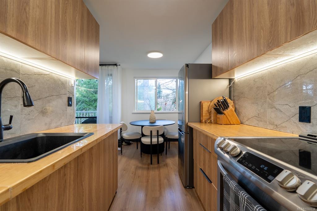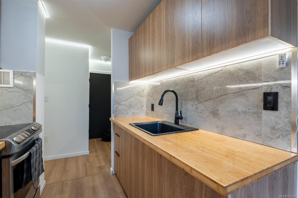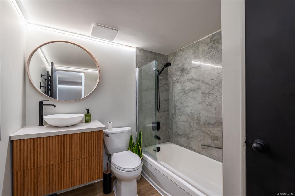 Move right into this stunning, completely renovated one-bedroom condo in central Nanaimo! Perfect for any lifestyle or an investment opportunity. Enjoy custom cabinetry and modern appliances in the bright kitchen, plenty of storage throughout, plus a versatile in-unit storage room/den – ideal for a home office, pantry, or extra organization. The showcase bathroom features premium fixtures, elegant tiling, and spa-like comfort. To complete the vibe, there is custom lighting throughout the unit bringing a ...