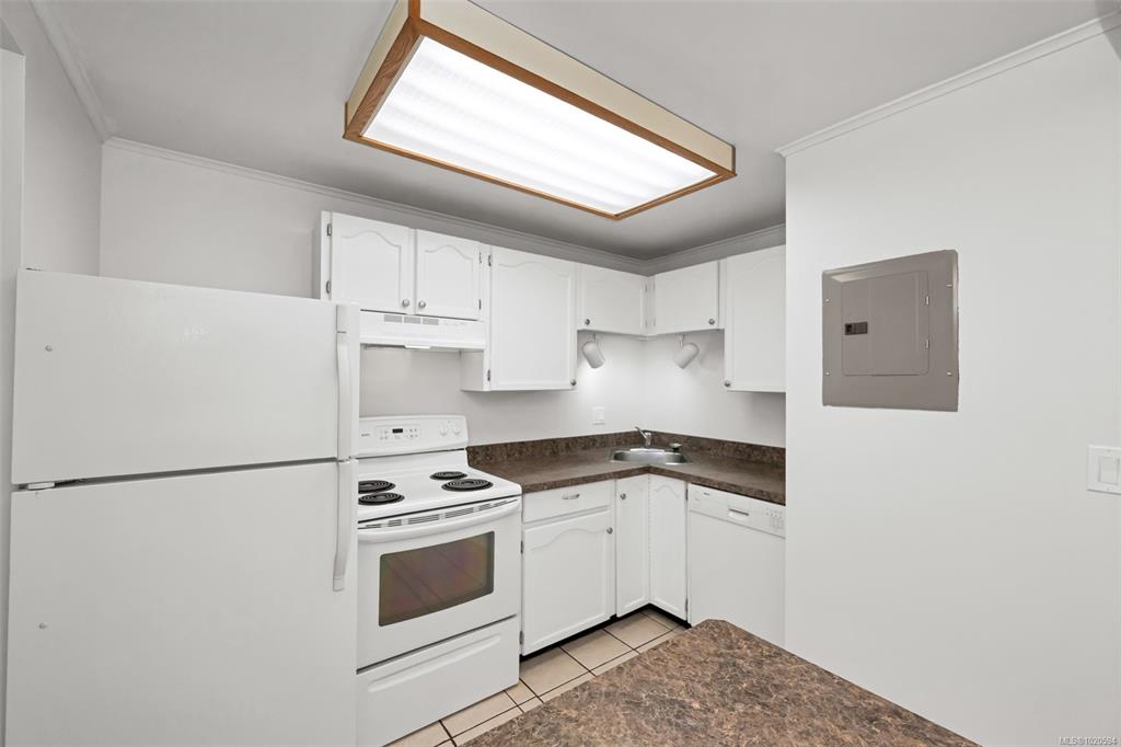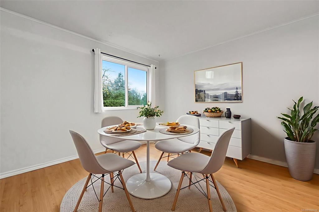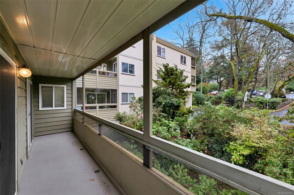 Surrounded by a Garry Oak forest and nestled in a quiet, secluded setting away from busy streets, this private 2-bedroom, 1-bathroom southwest corner suite offers peaceful living. It features a wood-burning fireplace, new LED lighting, laminate flooring, in-suite laundry, newer windows, newer washer and dryer, fresh paint, and a new hot water tank. The open kitchen includes a coffee bar, and sliding doors from the living room and primary bedroom lead to a spacious south-facing balcony. The dining area enjo...