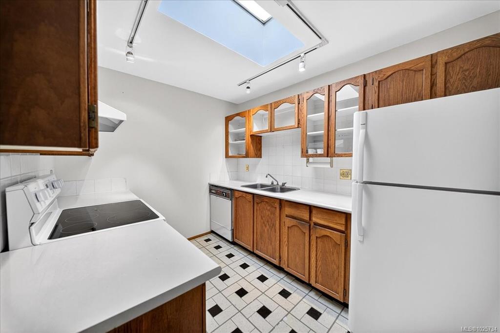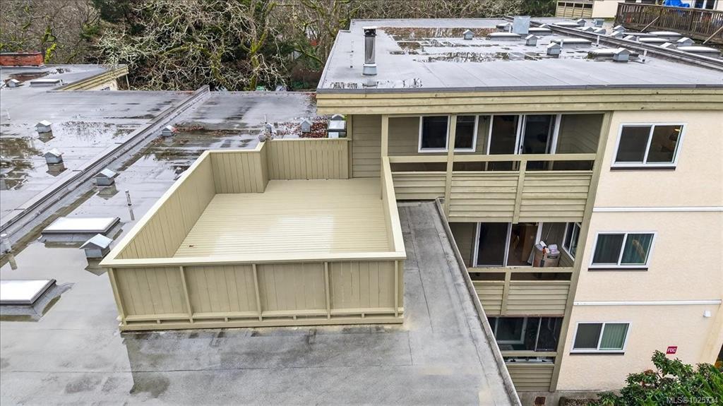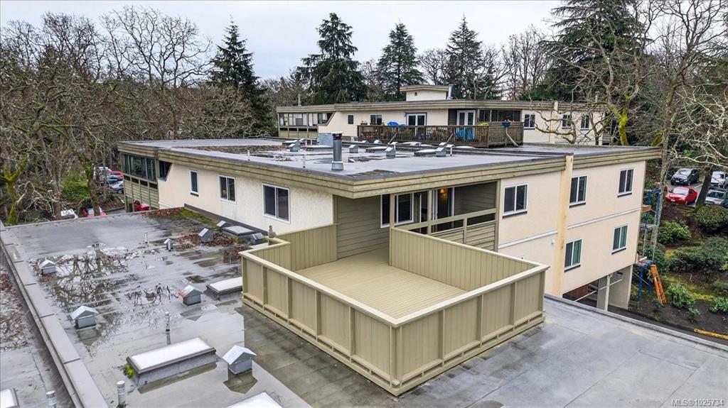 Immediate possession! Bright & private west-facing corner suite offering 1,100+/- sq ft of well-designed living space, plus a deluxe private rooftop patio perfect for outdoor entertaining or quiet relaxation. This spacious 2-bedroom, 1-bathroom home features 2 generously sized bedrooms thoughtfully positioned at opposite ends of the unit for added privacy. Surrounded by a tranquil Garry Oak forest & tucked away from busy streets, this peaceful space offers the best of nature & convenience. Kitchen with larg...