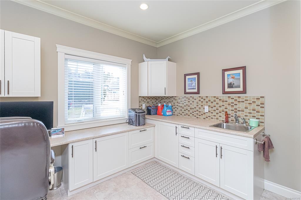 Grand custom-built rancher in a sought-after Chemainus neighbourhood just steps to the ocean and a short stroll to Malcolm Beach. This spacious 3-bedroom, 3-bath home features an inviting open-concept design centered around a gourmet kitchen with high-end Wolf and Sub-Zero appliances, quartz countertops, and an exceptional layout for entertaining family and friends. Rich Brazilian cherry hardwood and tile floors are warmed by in-floor radiant heat and complemented by elegant 9-ft coffered ceilings. The gene...