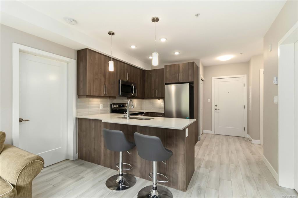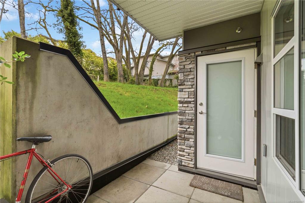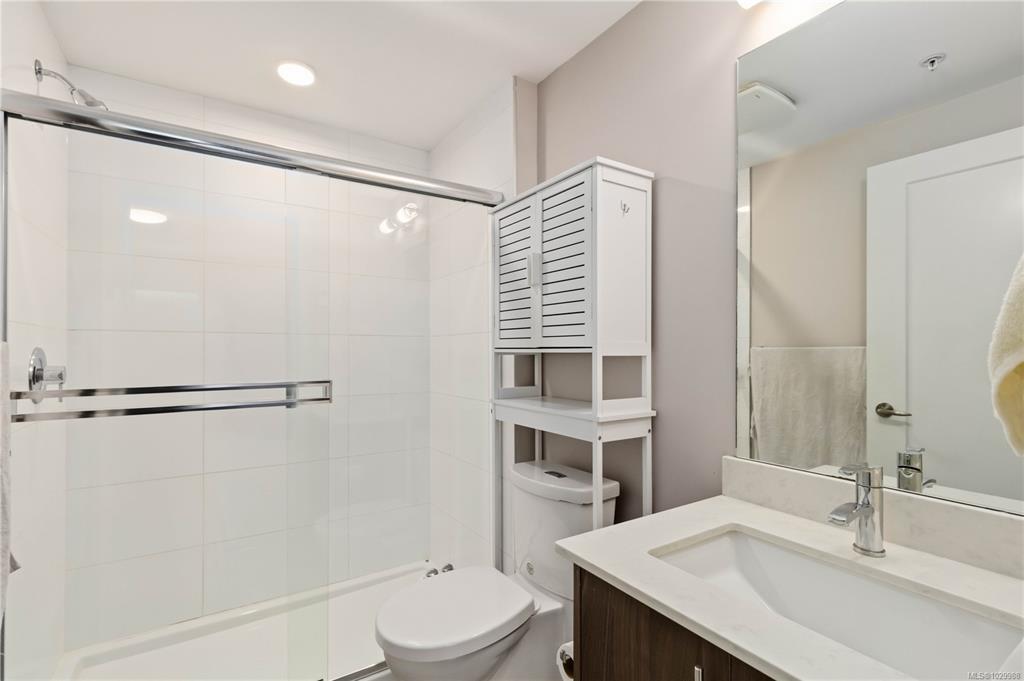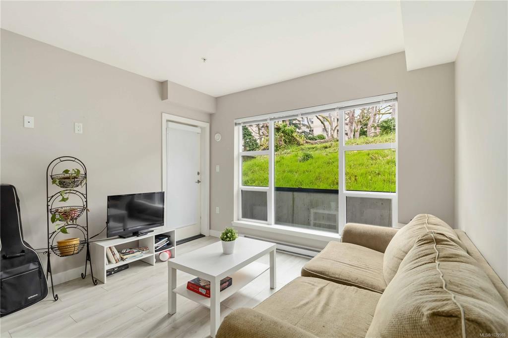 O/H SAT APR 11th 11:45pm-1pm. Virtual OH, HD VIDEO, 3D TOUR, PHOTOS & FLOOR PLAN. Welcome to this Spacious 2bd, 2bth condo in the sought-after Shire, located in the heart of Saanich. This quiet ground-floor unit sits at the rear of the building, facing protected green space w/Garry Oaks. The open-concept layout features a modern kitchen w/stainless steel appliances, quartz countertops, soft-close cabinetry, & an eating bar. Enjoy a spacious private patio off the living area, perfect for relaxing or entertai...