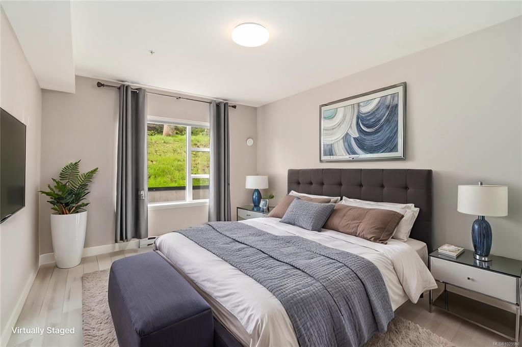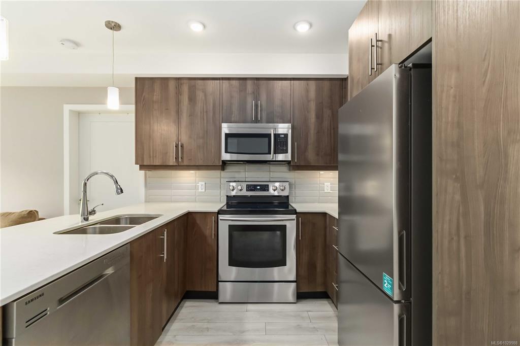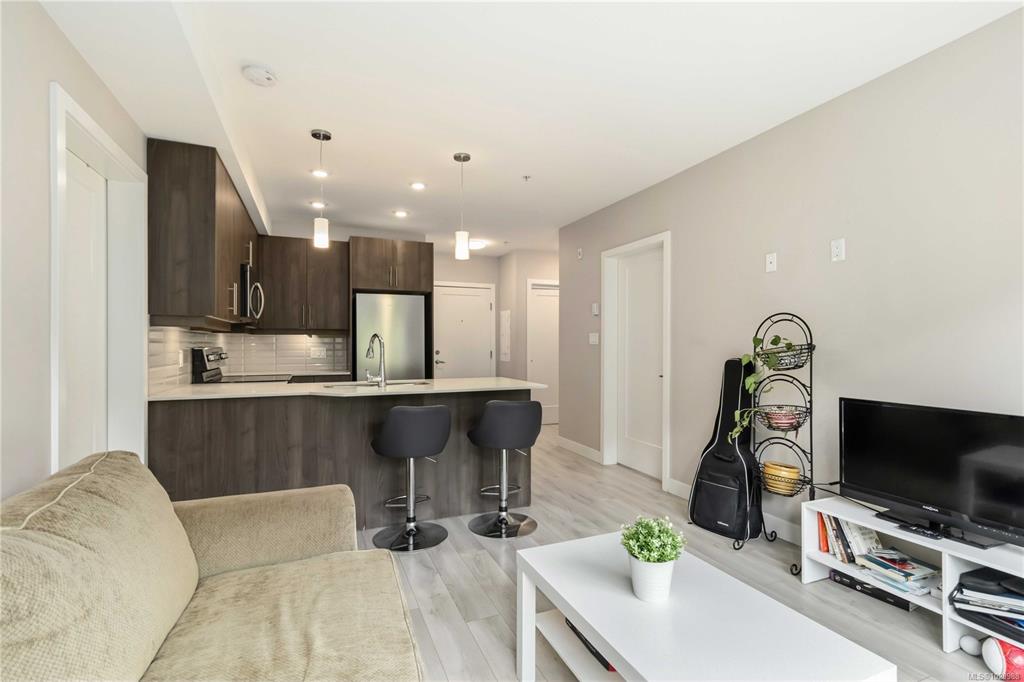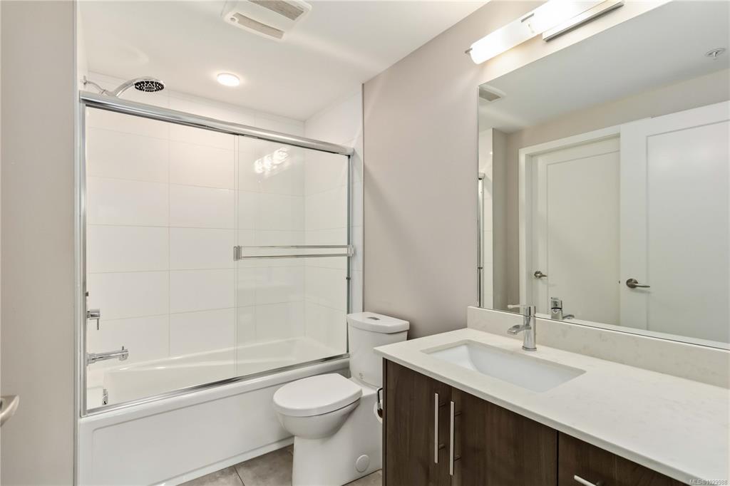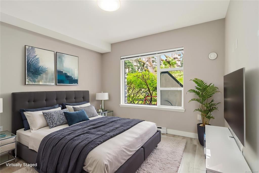 O/H SAT APR 11th 11:45pm-1pm. Virtual OH, HD VIDEO, 3D TOUR, PHOTOS & FLOOR PLAN. Welcome to this Spacious 2bd, 2bth condo in the sought-after Shire, located in the heart of Saanich. This quiet ground-floor unit sits at the rear of the building, facing protected green space w/Garry Oaks. The open-concept layout features a modern kitchen w/stainless steel appliances, quartz countertops, soft-close cabinetry, & an eating bar. Enjoy a spacious private patio off the living area, perfect for relaxing or entertai...