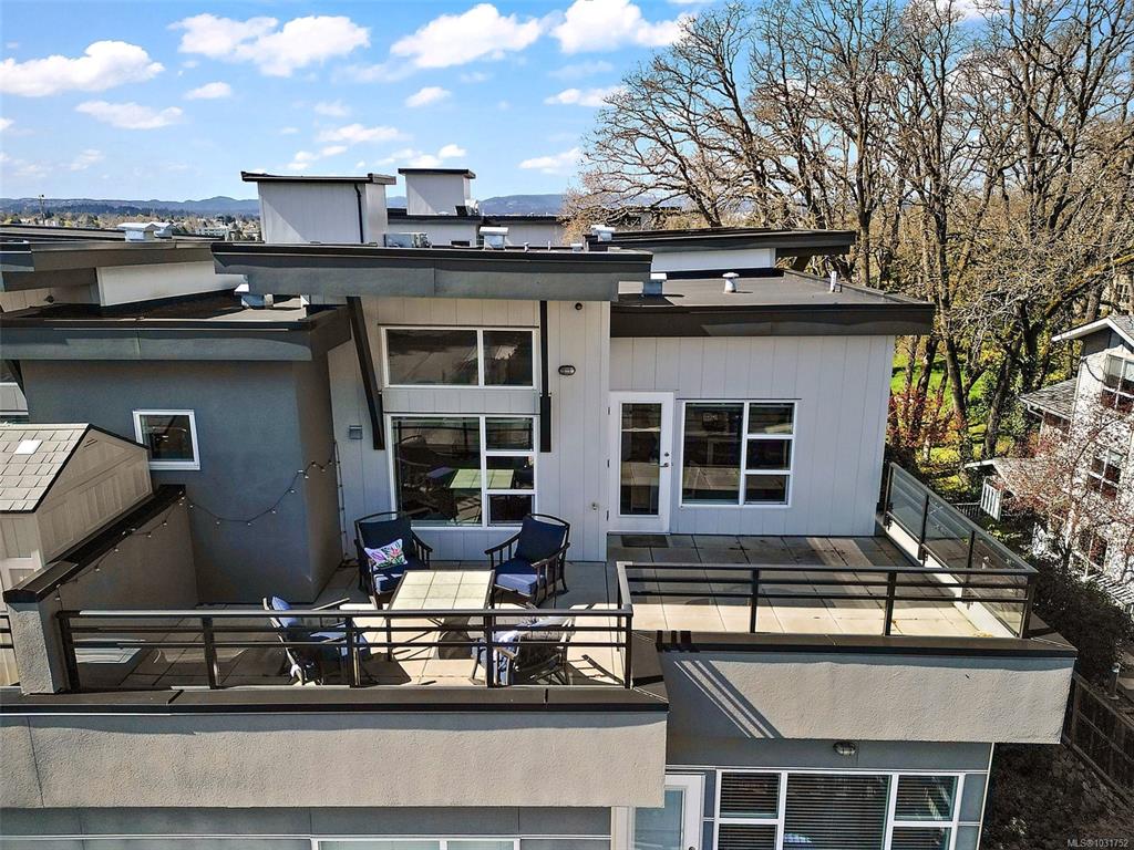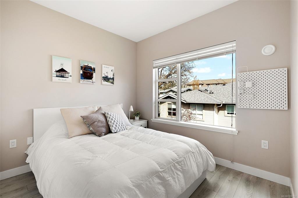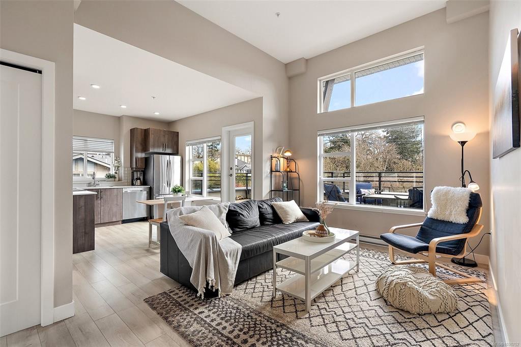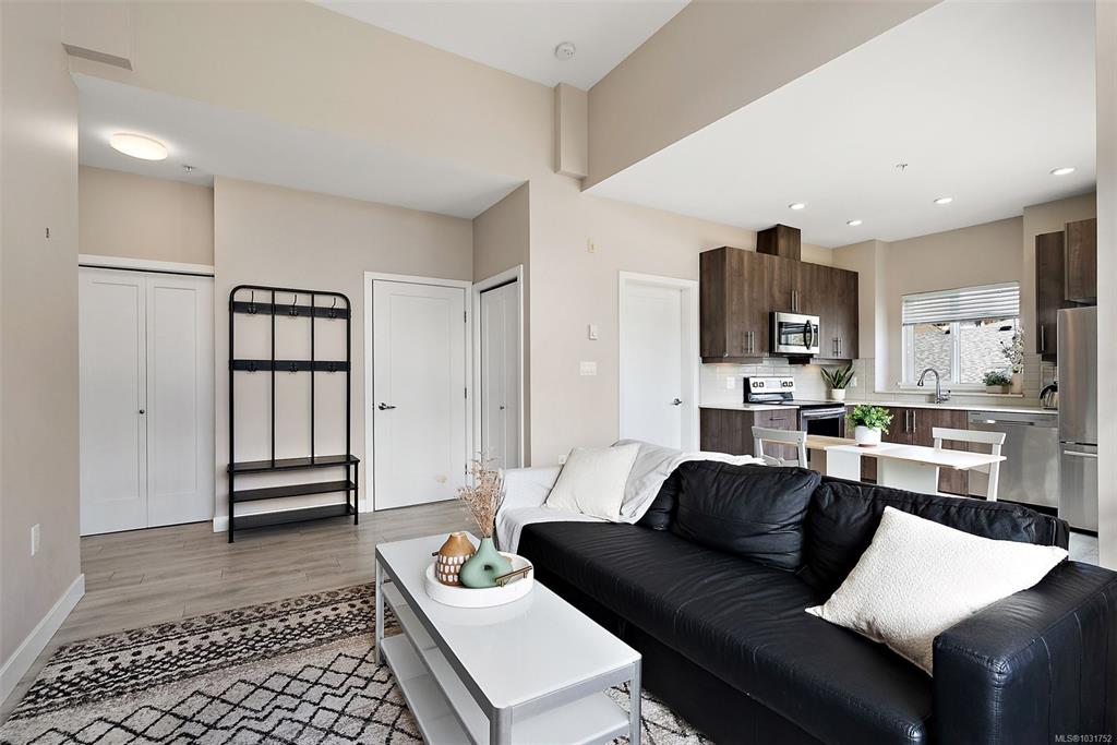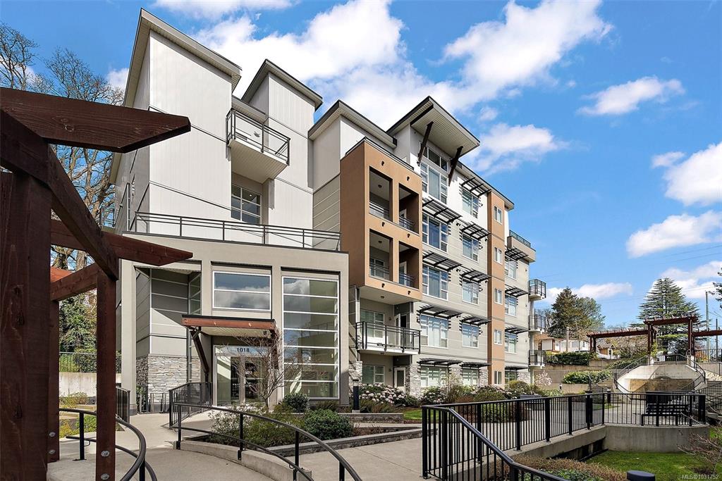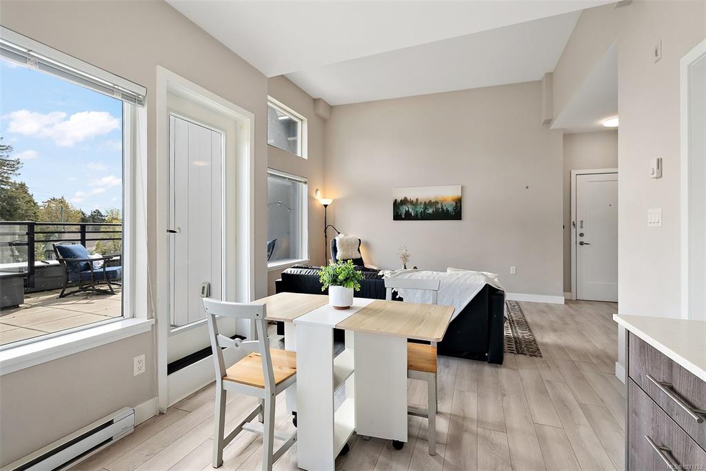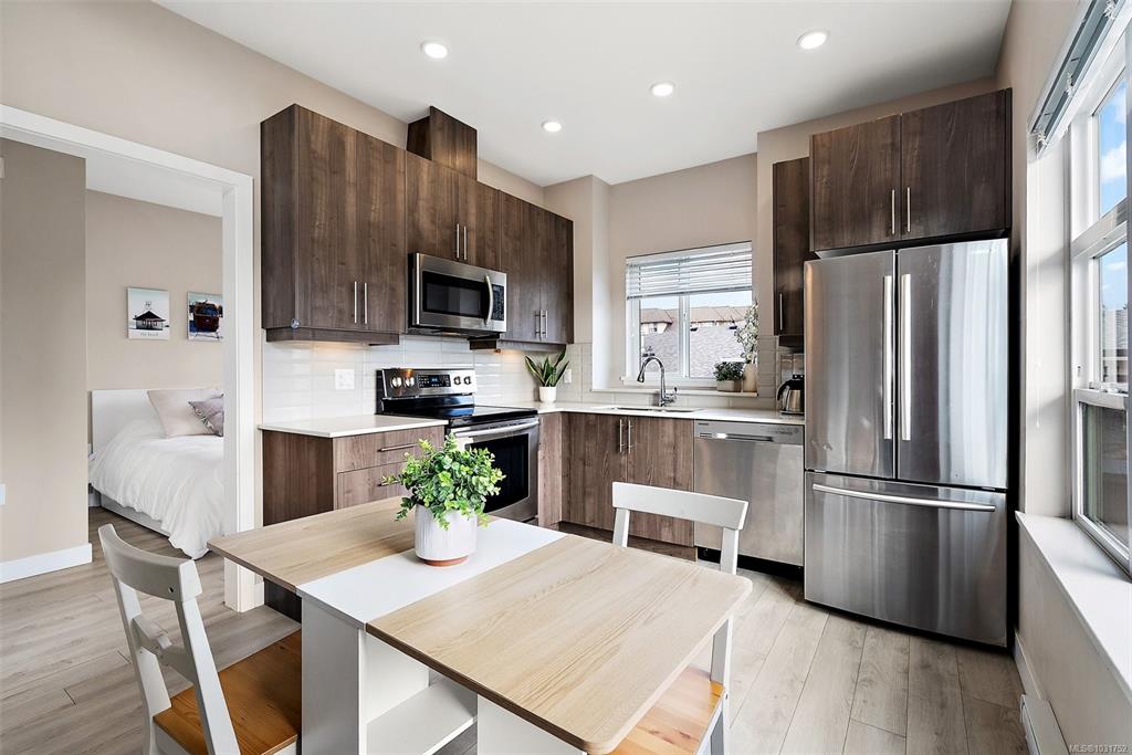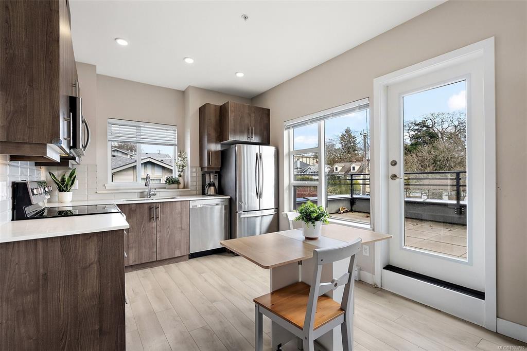 Soak up the sun on your oversized private balcony—this top-floor corner unit offers bright, modern living in a fantastic central location. This 1 bed, 1 bath home features an open-concept layout with vaulted ceilings, quartz countertops, stainless steel appliances, and quality finishes throughout. Enjoy in-floor heating in the bathroom and the convenience of in-suite laundry. Includes secure underground parking, storage locker, and no size restrictions for pets. Ideal for first-time buyers, downsizers, or a...