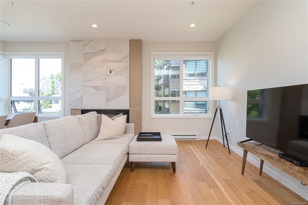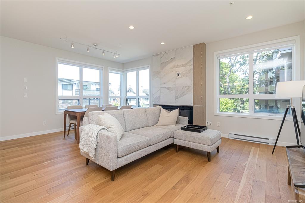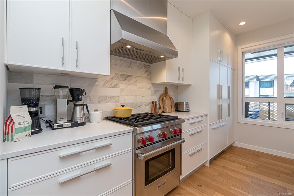 You'll love this sophisticated and well-appointed 2br 2 bath + den condo is Victoria's charming Rockland neighborhood. This bright corner unit offers 1,247 sq. ft. of indoor living space with a large west facing 240 sq. ft. deck fit with built in radiant patio heater. The gourmet kitchen boasts a European appliance package, featuring deluxe Wolf gas range and Fisher & Paykel refrigerator and double-drawer dishwasher. Secure parking space, storage locker, and bicycle lock-up. The complex is nestled among st...