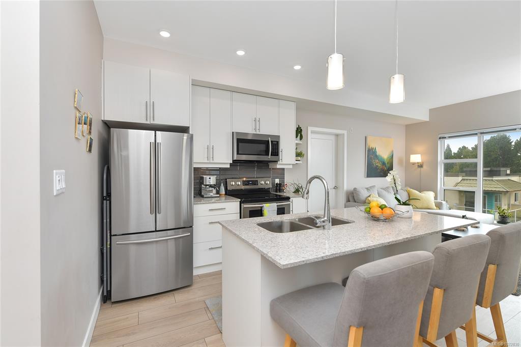 From morning coffee to evening wine, your SW-facing wraparound balcony becomes a front-row seat to cotton candy sunsets and twinkling city lights. Unit 406 is a sought-after corner unit at The Shire, a newer, impeccably maintained building in a vibrant, walkable neighbourhood. Inside, oversized windows flood the space with natural light, highlighting a smart 2-bed, 2-bath layout with separated bedrooms for added privacy. The open living area is anchored by a stylish kitchen with island seating, quartz count...