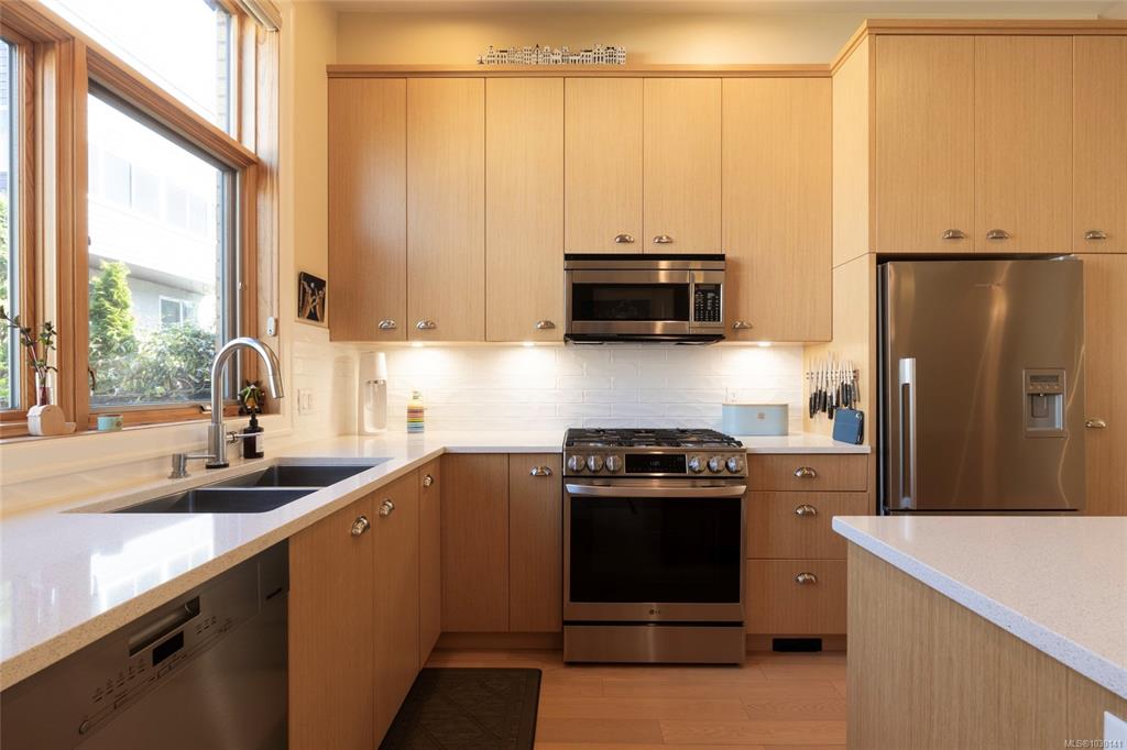 An exceptional chance to own a residence in Terra Verde, a boutique collection of just sixteen upscale townhomes designed by Abstract Developments. Tucked along a quiet tree-lined street near Cook Street Village, this setting blends easy walkable access to shops, dining, and services with a calm, private atmosphere and strong neighborhood feel. Inside, the home offers 1607 square feet of modern living across three levels, featuring three bedrooms and three bathrooms, including a bright ensuite with skylight...
