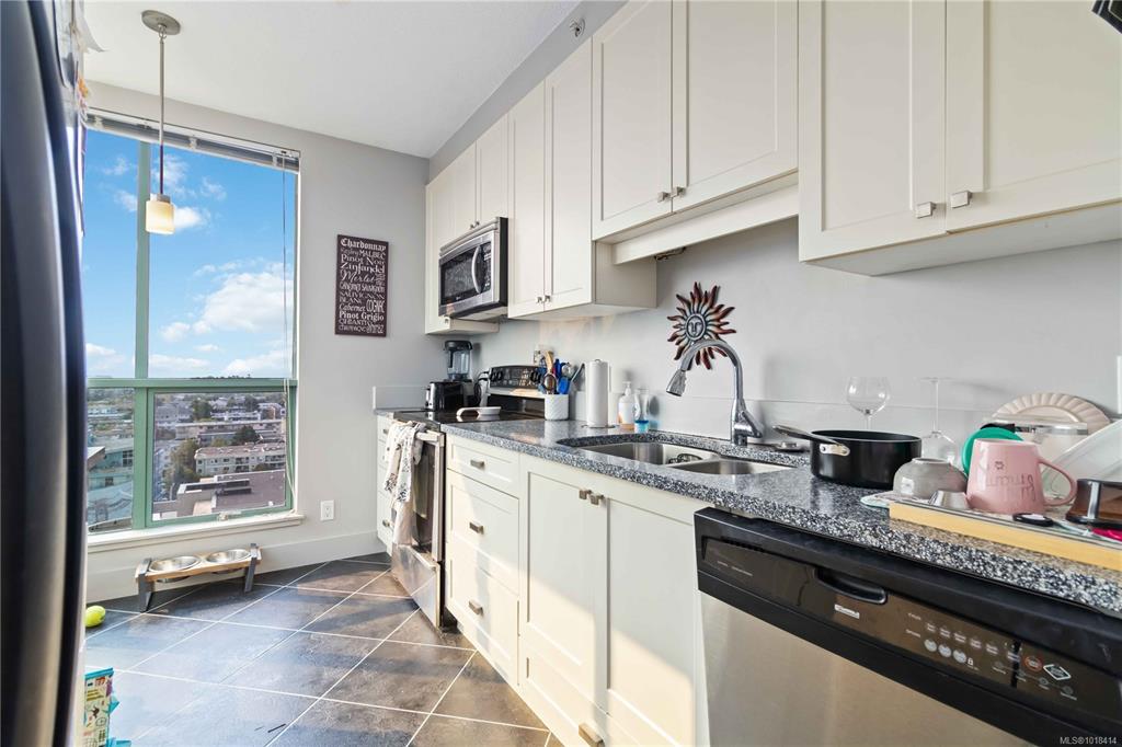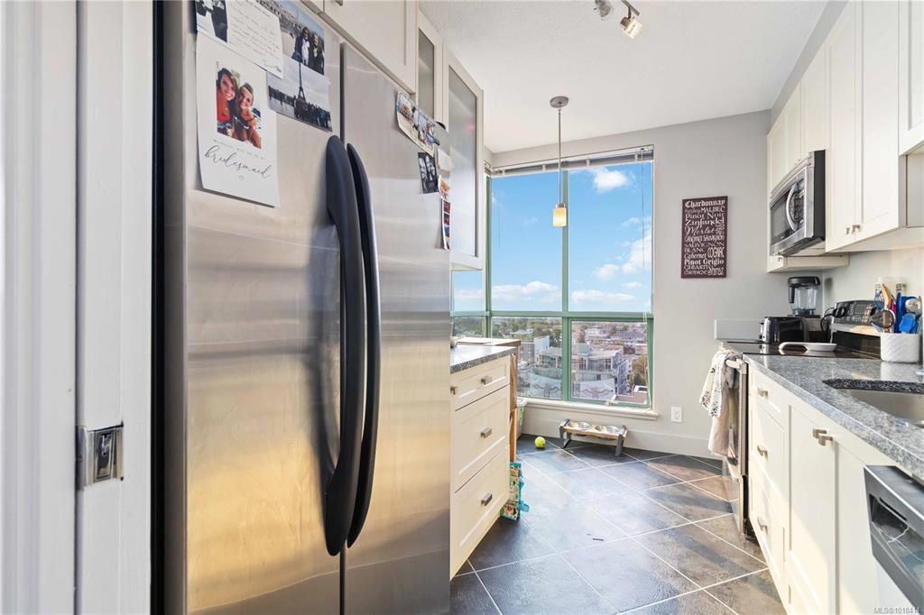Spectacular Views! Perched on the 13th floor of Regents Park, this south-facing 2-bedroom, 2-bath condo showcases panoramic views of the ocean, Olympic Mountains, and Victoria skyline. Over 1,100 sq ft of living space includes a split-bedroom layout, spacious primary suite with walk-through closet and ensuite, in-suite laundry, and a large balcony to enjoy the scenery. The steel and concrete building is pet-friendly and offers secure underground parking, storage, fitness centre, hot tub, and on-site caretak...