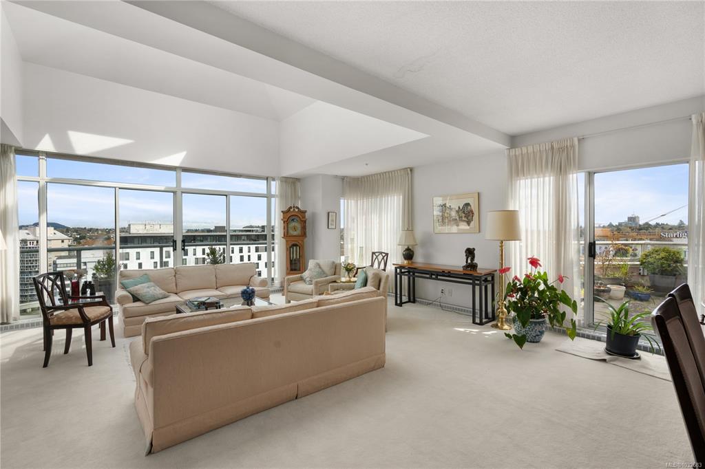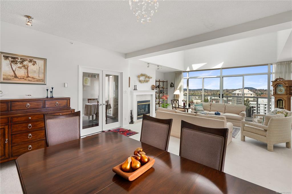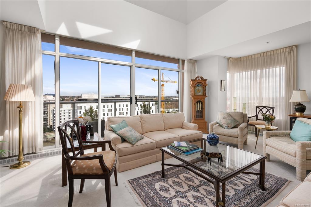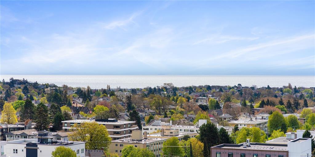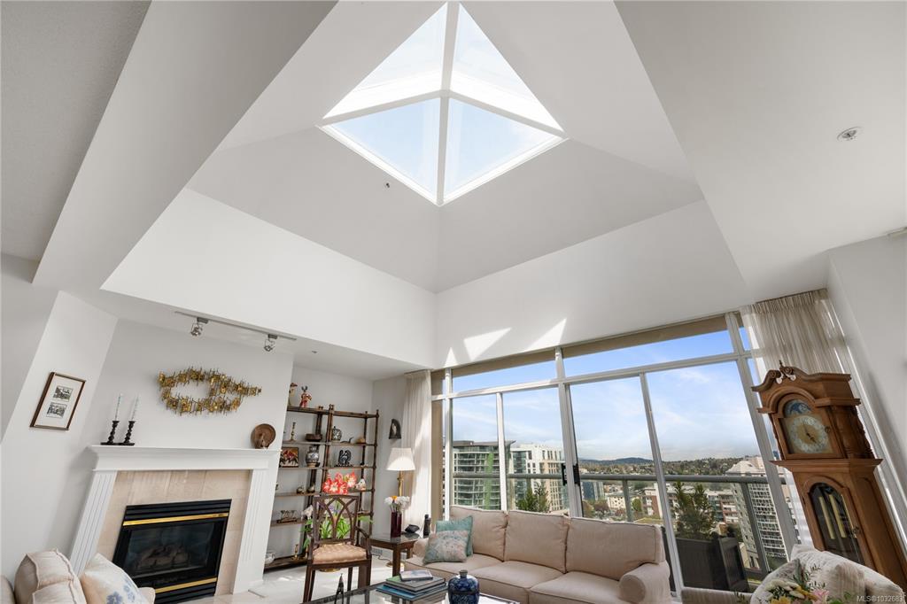 Perched atop Regents Park, this 17th-floor penthouse offers an exceptional blend of space, light, and panoramic city, mountain, and water views in the heart of downtown Victoria. With over 1,800 sq ft, the home features bright living and dining areas, 9-foot ceilings, a vaulted skylight, and a cozy fireplace. The layout includes two bedrooms, a den, and five private balconies for seamless indoor-outdoor living. The primary suite offers a walk-in closet, private patio, and a spacious ensuite with dual sinks,...