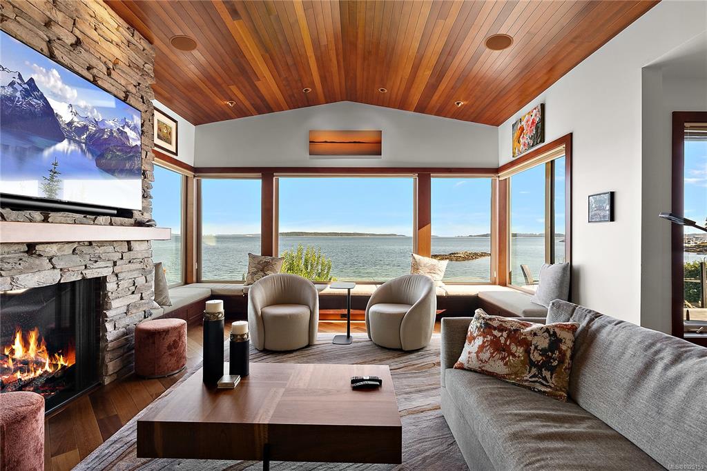 Luxury Waterfront Living in Sidney - This custom-built Roger Garside home offers the perfect blend of luxury, location, and lifestyle. Situated on a quiet cul-de-sac just a short stroll from downtown Sidney, the property is set as close to the water’s edge as possible, showcasing panoramic views of Mt. Baker, sailboats, seals, and shorebirds. A gently sloping beach invites sunset walks, beach fires, or launching your kayak. Thoughtfully designed, the home features a primary suite on the main with a spa-insp...