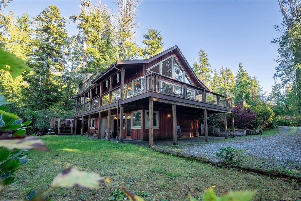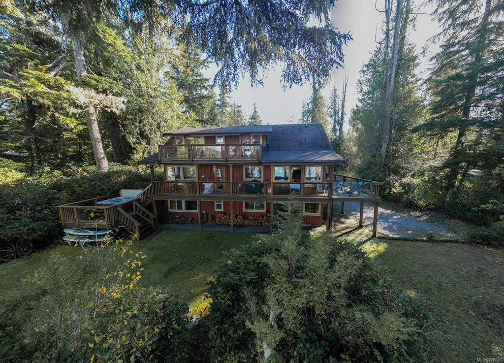 Tofino inlet front oasis. .63 acre lot, 2693sq ft home, 3 bed, 2 bath, plus 1 bed 1 bath suite. This home has one of the best views in all Jensens Bay. The open-concept great room boasts 18ft vaulted wood ceilings, gorgeous wood beams, wood flooring & trim, & a slate tile propane fireplace. The main living area leads to an expansive wrap around balcony, great for wildlife viewing. Kitchen w/granite countertops, stainless steel appliances & breakfast bar. Also on the second level are 2 beds & 1 bath. Third...