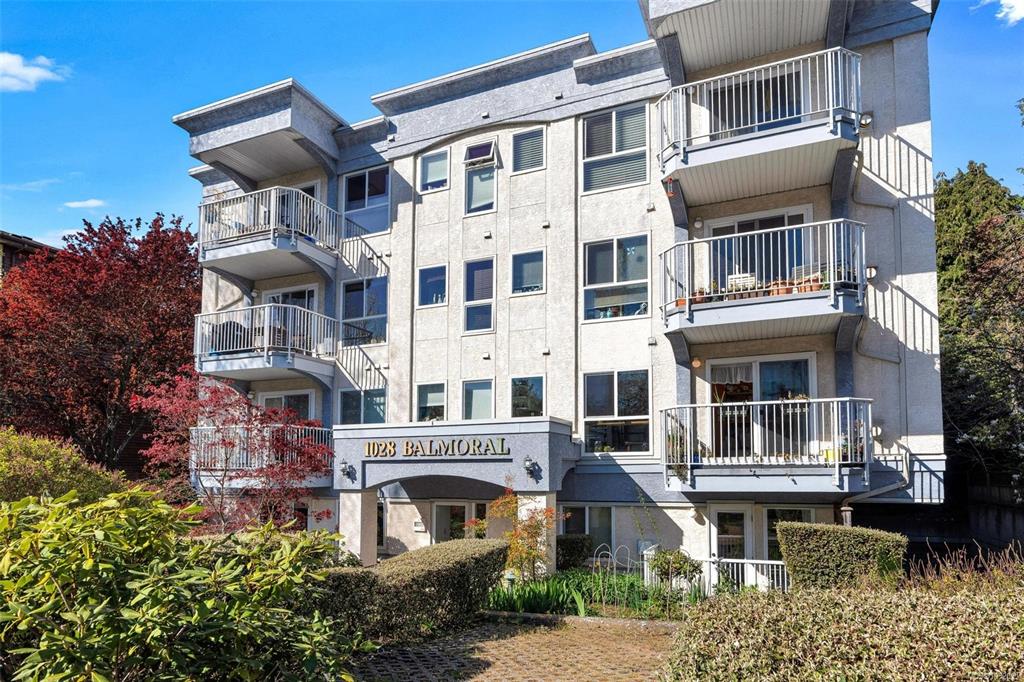 Experience a sun-drenched, south-facing 2 Bed, 1 Bath home at The Balmoral, beautifully updated throughout. The functional layout features an inviting living and dining area anchored by a cozy gas fireplace, while the sunny balcony offers the perfect setting for your morning coffee. The refreshed kitchen showcases modern finishes and quality appliances, complemented by durable laminate flooring and designer paint throughout. Thoughtful upgrades also include a custom closet system, updated blinds, and a full...