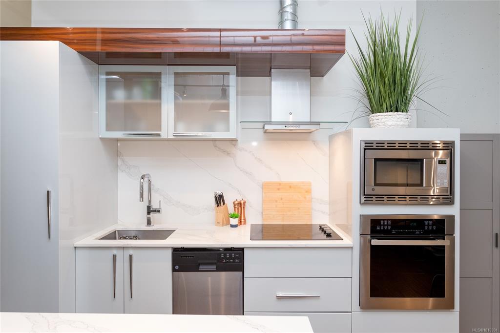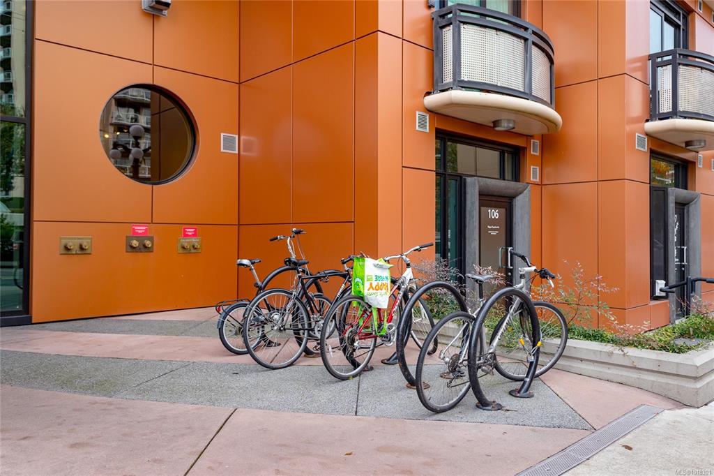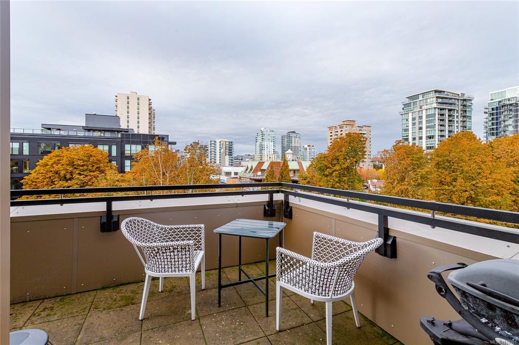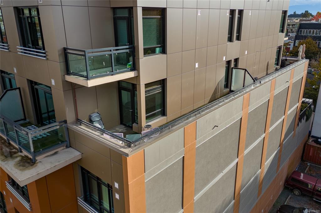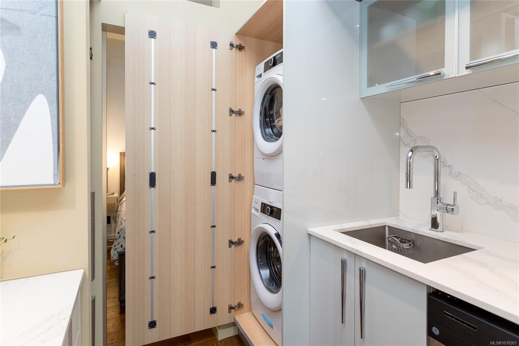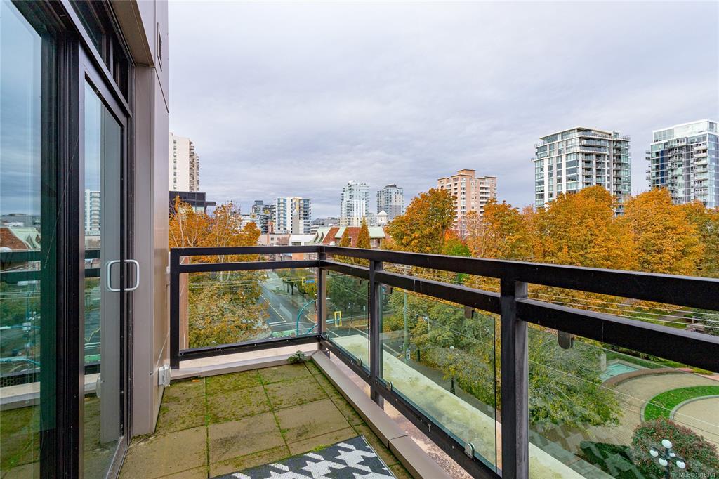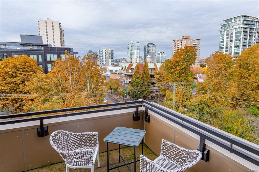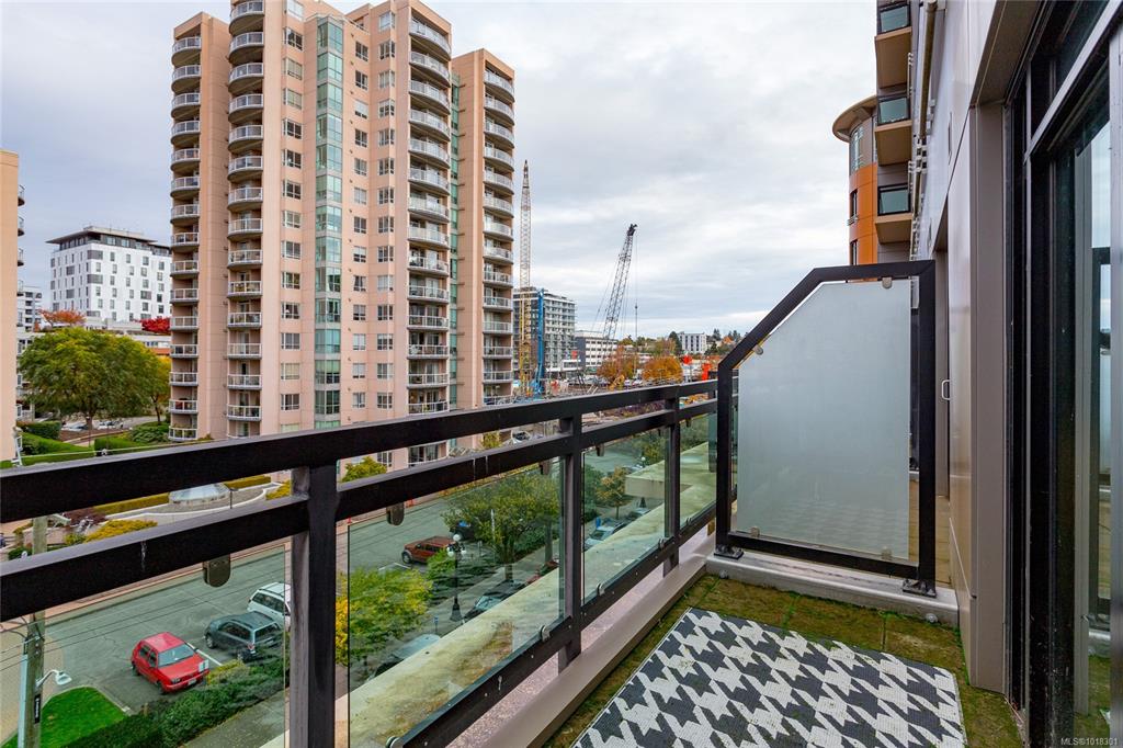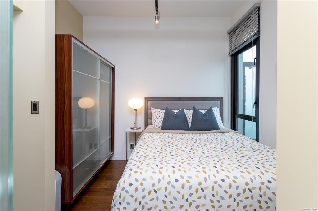Gorgeous & Unique Loft Style Living in The Juke Box! Light filled corner unit with floor to ceiling windows, over 400 sq. ft of balconies,10'high ceilings, European Vinyl Plank flooring throughout, high gloss kitchen w/quartz counters, built in appliances and island, decadent bathroom with ceiling rain shower head, washer and dryer and custom freestanding armoires. Live the downtown lifestyle in Harris Green-across the street from Yates Market with its numerous market stores, 1/2 block to Cook St., yet only...