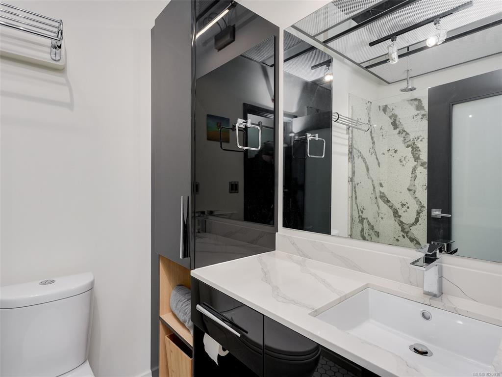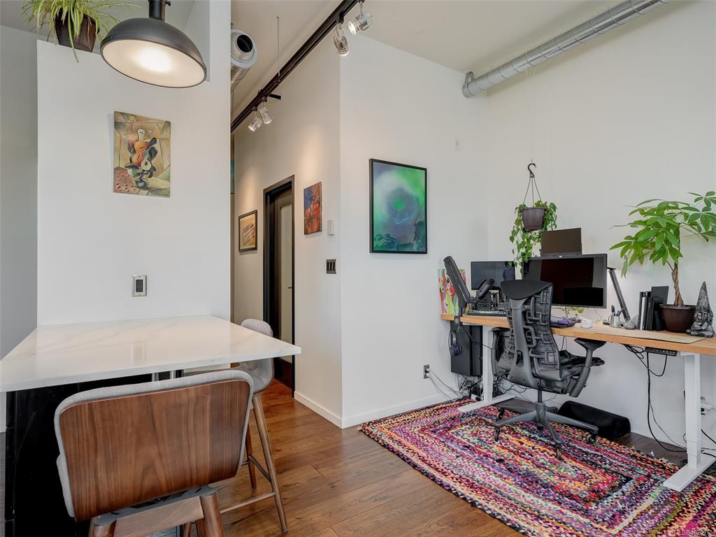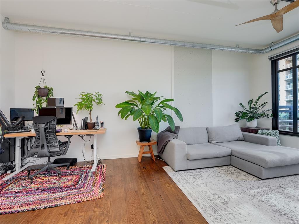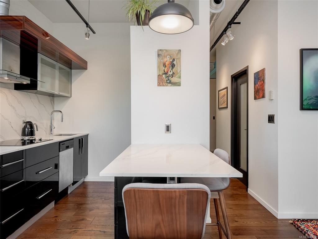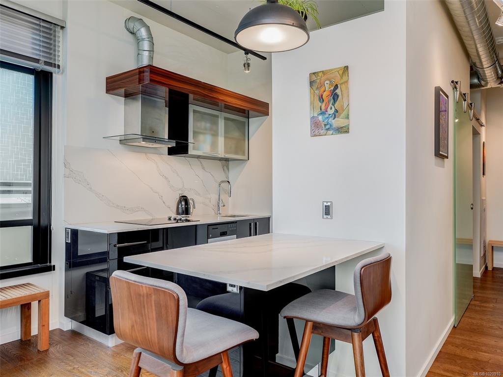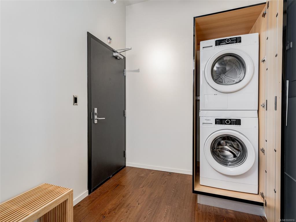 Stylish one-bedroom corner unit with an expansive private terrace! Located in the Jukebox, a quality steel-and-concrete building. This home features an industrial vibe with exposed ductwork and concrete walls. Features include 10 ft. ceilings, hardwood floors, quartz countertops, premium stainless appliances, and in-suite laundry. Enjoy BBQs, and gardening from your spacious terrace. Building amenities include a fully equipped gym and a serene third-floor meditation garden exclusively for residents. Ideally...