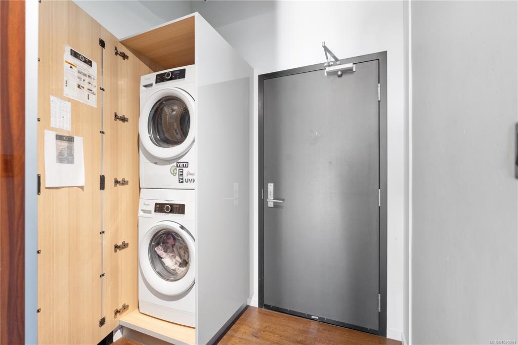 Welcome to The Jukebox – Live in style in this 5th-floor 1-bedroom condo in a solid steel-and-concrete building. South-facing floor-to-ceiling windows flood the space with natural light, highlighting industrial touches like exposed ductwork, concrete walls, hardwood floors, quartz countertops, and premium stainless steel appliances. The well-designed layout features frosted glass sliding doors, a spa-inspired bathroom with a ceiling rain shower and in-suite laundry. Enjoy amenities like a fully equipped fit...