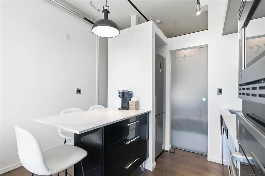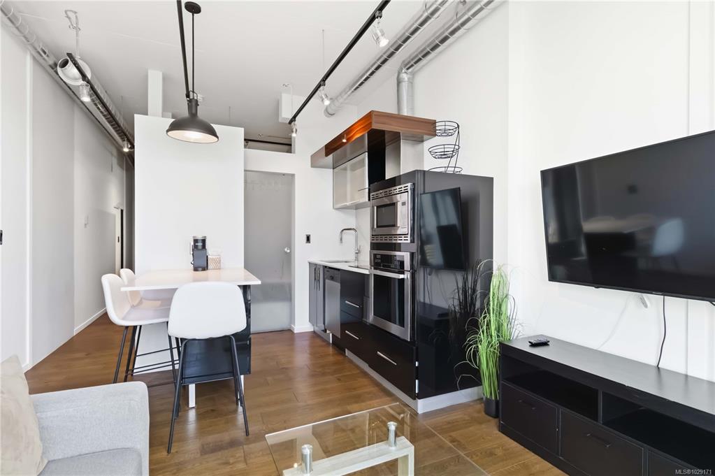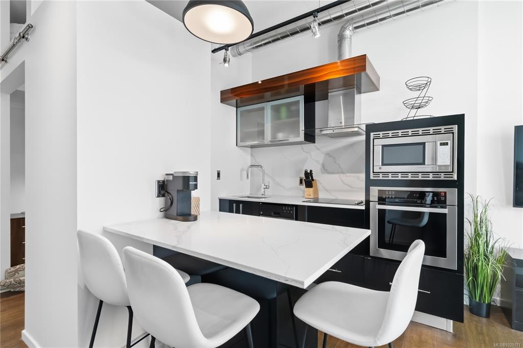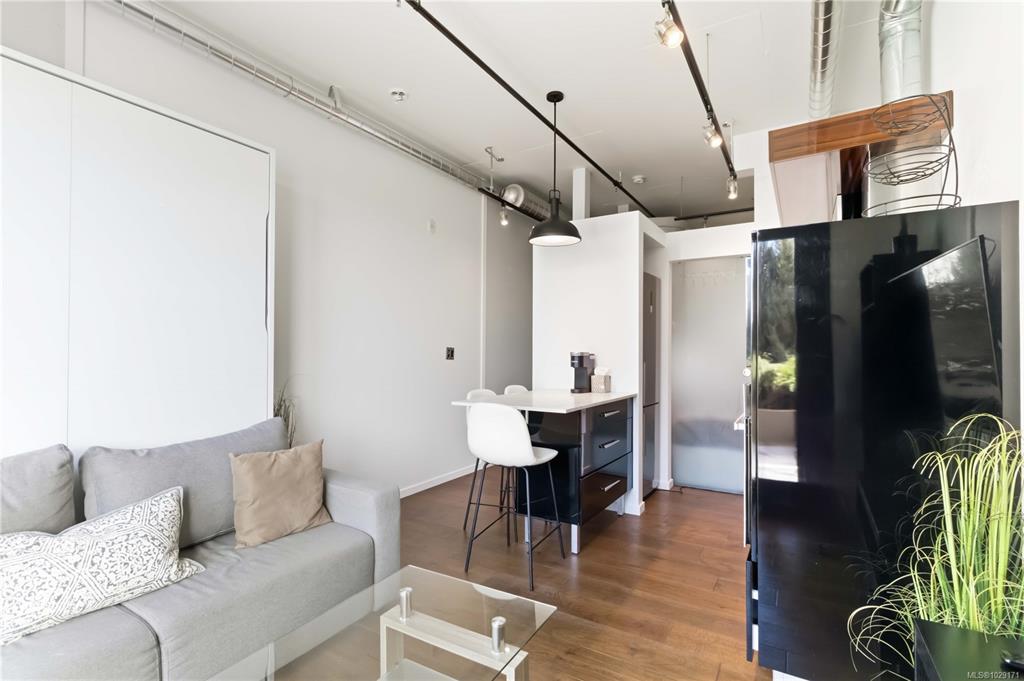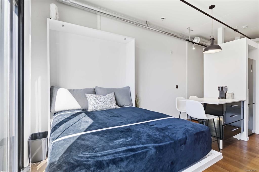 Thoughtfully designed for comfort and livability, this freshly painted unit features 10 ft ceilings, hardwood floors, quartz countertops, GE Loft Series appliances, and in-suite laundry. The south-facing 12' x 15' patio is a rare bonus, with only a few units offering this larger outdoor space. Sold fully furnished with a new queen Murphy bed and mattress, TV, coffee maker, patio furniture, BBQ, umbrella, propane heater, plus linens, towels, and kitchenware, it is a true turnkey opportunity. Located in vibra...