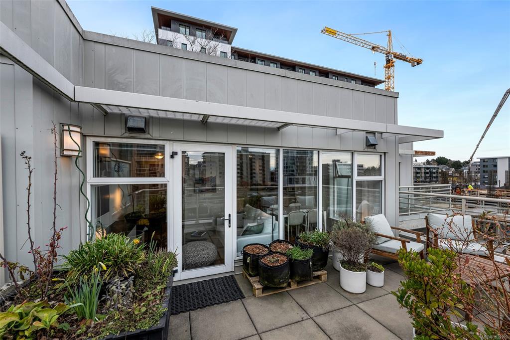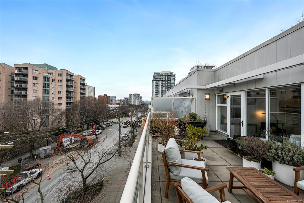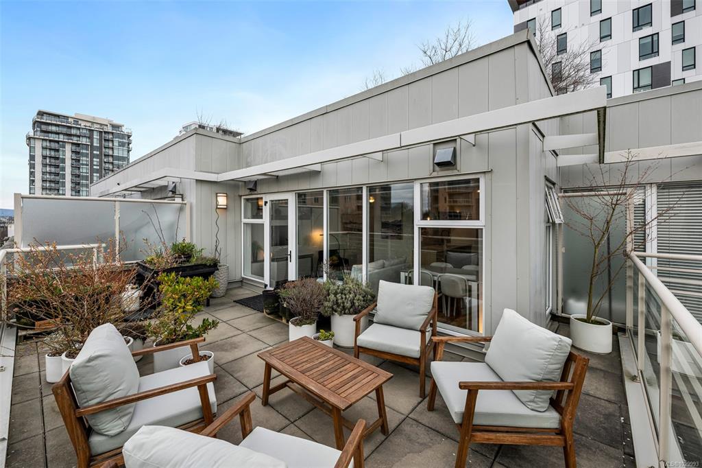 Urban, chic, and meticulously appointed, this two level penthouse condo blends modern style with thoughtful upgrades completed since 2021. The main level features an impressive kitchen with quartz countertops, inductive stove, concealed Asko d/w, BLUM hardware, and sleek finishes, along with a stylish two piece guest bath (check out the wallpaper). The open dining and living area flows seamlessly to a large south facing patio—ideal for entertaining, gardening, or unwinding in the sun. Downstairs, discover t...
