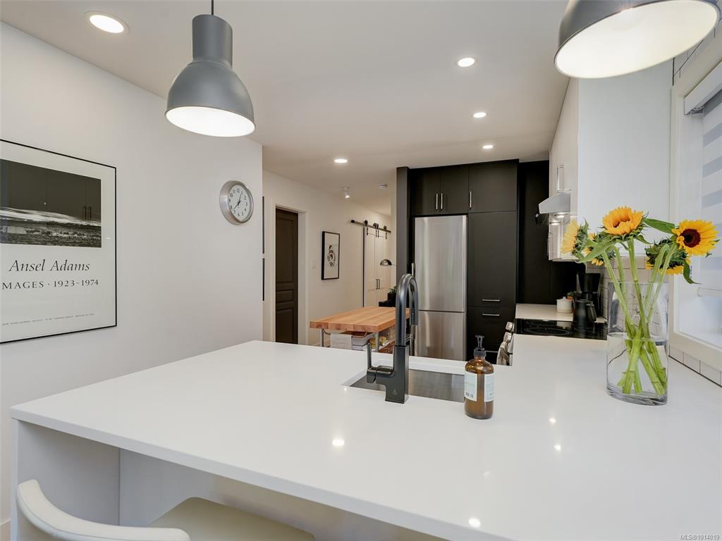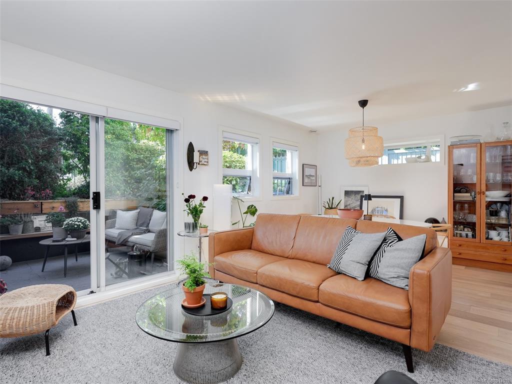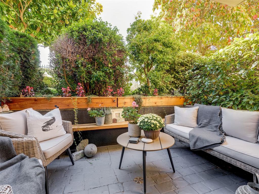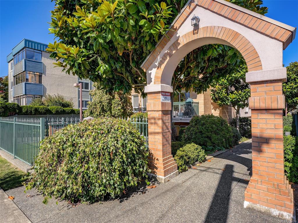 Just steps from Cook Street Village, this beautifully remodelled 1BR/1BA condo offers a rare blend of style, comfort, and convenience. Redesigned with a clean, modern aesthetic, the home features a smart floor plan that maximizes space and natural light. The spacious primary bedroom includes a shared ensuite, while the open living and dining areas are centered around a cozy gas fireplace. This one of a kind, ground-floor end unit features windows on three sides creating a bright, airy atmosphere throughout....