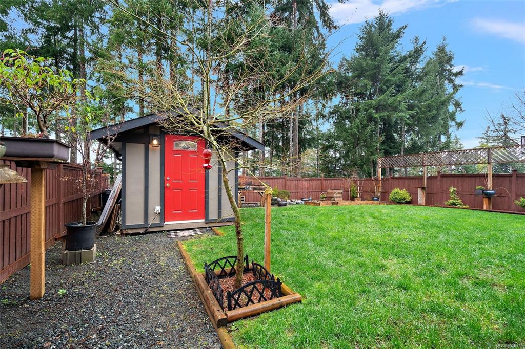 Life by the lake! Stop by Shawnigan heights for a close look at this three-bed, three-bath home. On the lower floor, your primary bedroom comes complete with a walk-in closet and private, en suite bathroom. The upper floor features nine-foot ceilings; open-concept design; contemporary kitchen with quartz countertops; and covered patios/decks on both ends of the house, giving you views of sunrises and sunsets. The SW deck overlooks a landscaped, fully fenced backyard with separate studio, storage shed, raise...
