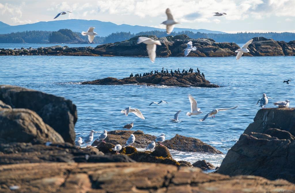 Discover your perfect coastal sanctuary in Salmon Beach. This stunning home boasts soaring vaulted ceilings and wall of windows that capture the essence of seaside living. The bright main level features a welcoming living room and kitchen with butcher block countertops, plus a 3-piece bath. Upstairs, the primary bed offers a tranquil retreat with an office space and a private balcony showcasing breathtaking ocean views. Experience the beauty of your surroundings with bald eagles soaring above and sea lions ...