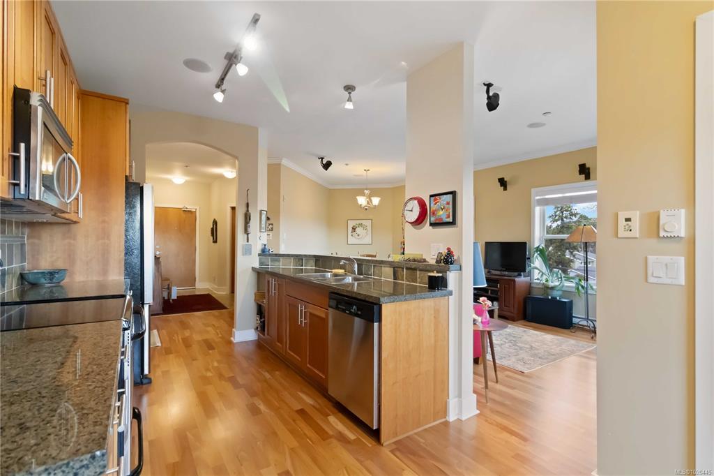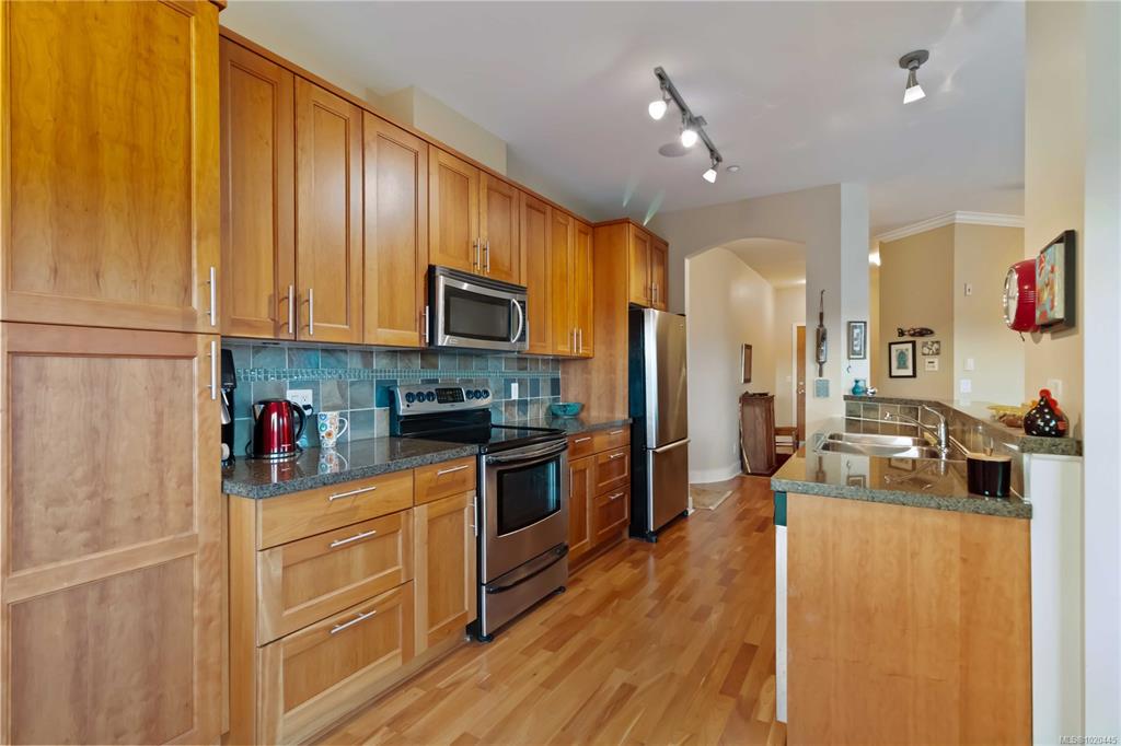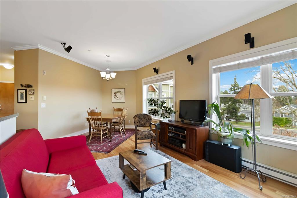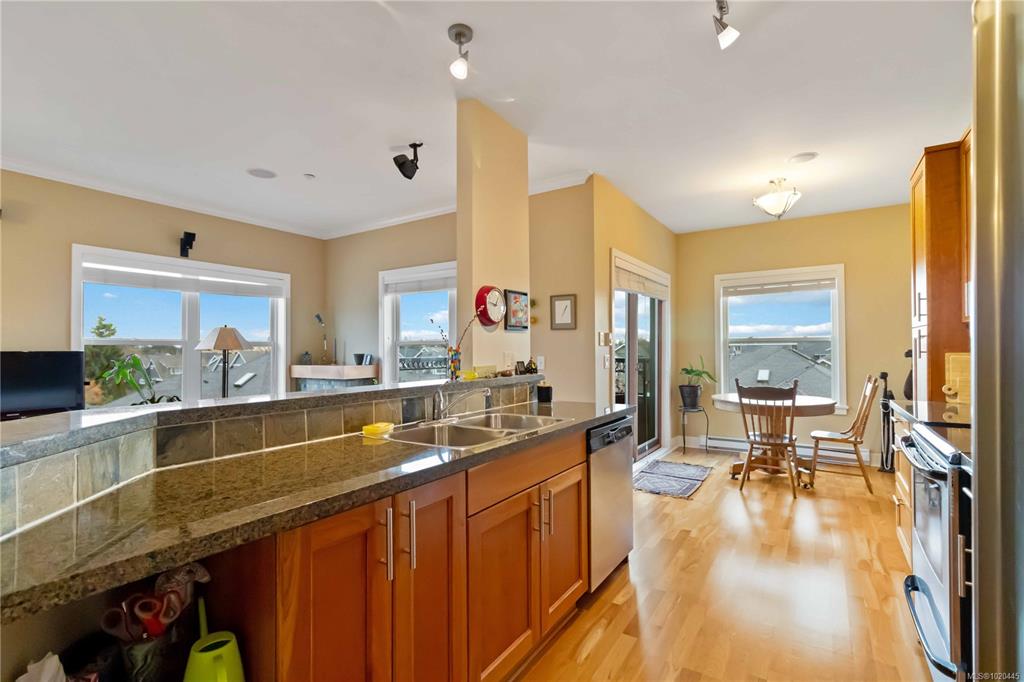 Welcome to The Meadows! - a prestigious, quiet, 55+ gated community with extremely low turn-over, in north Sidney near Tsehum Harbour. This coveted condo is the prime unit of the complex, situated on the top floor corner with South, East and West exposures, offering a thoughtful single-level layout with 2 bedrooms, a den, and 2 bathrooms. The kitchen features granite counters, stainless steel appliances, tile backsplash, and high quality wood cabinetry, while the main living space includes engineered hard...