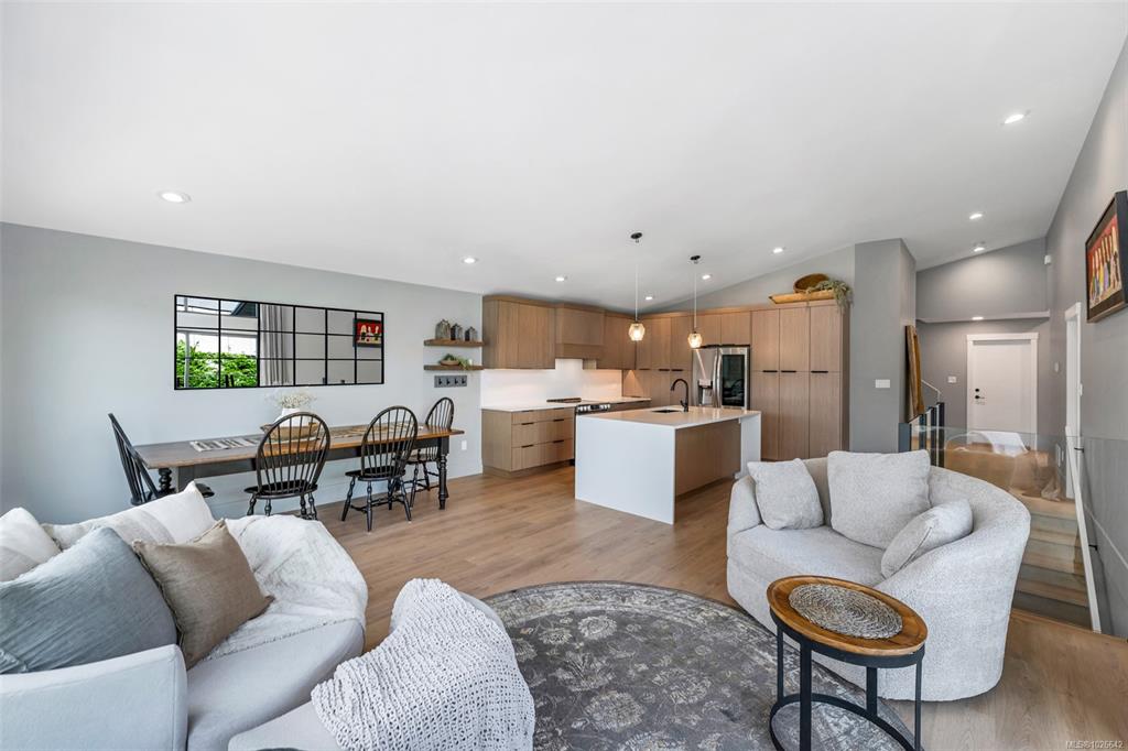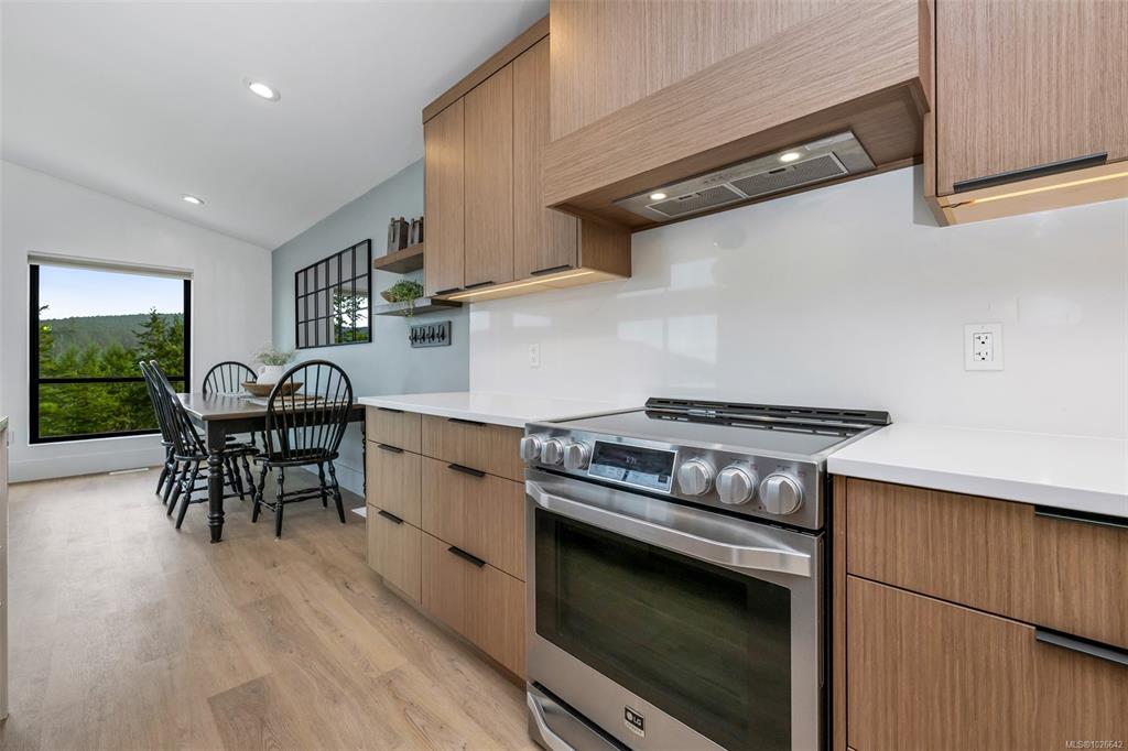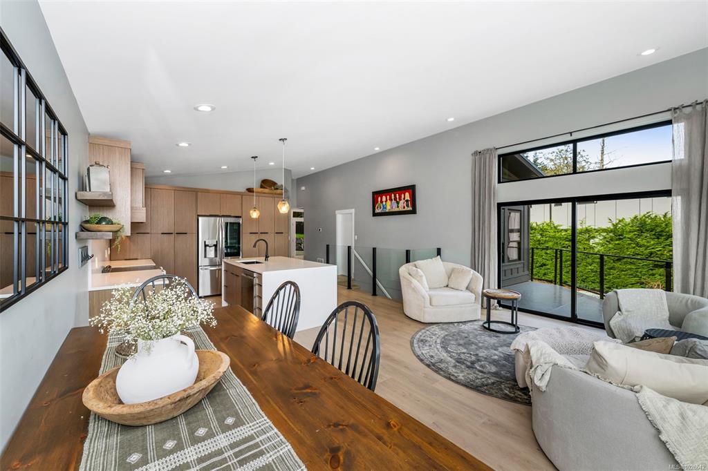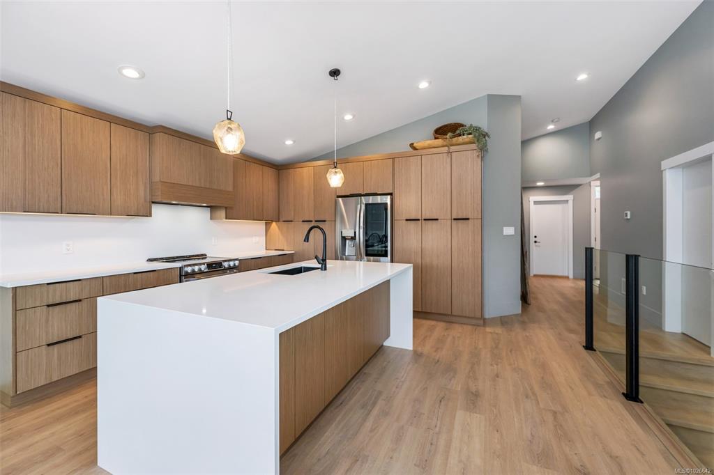 Welcome to this stunning West Coast contemporary home in The Rise on Maple Bay, offering ocean views over Maple Bay and Birds Eye Cove. With 2391sqft over 3 levels, this 4 bed, 4 bath home blends modern style with functional living. The main level features open-concept living, dining & kitchen with vaulted ceilings and views. The kitchen boasts solid wood cabinetry, quartz counters, tile backsplash and a large island with waterfall countertop. The primary bedroom on the main includes a walk-in closet & ensu...