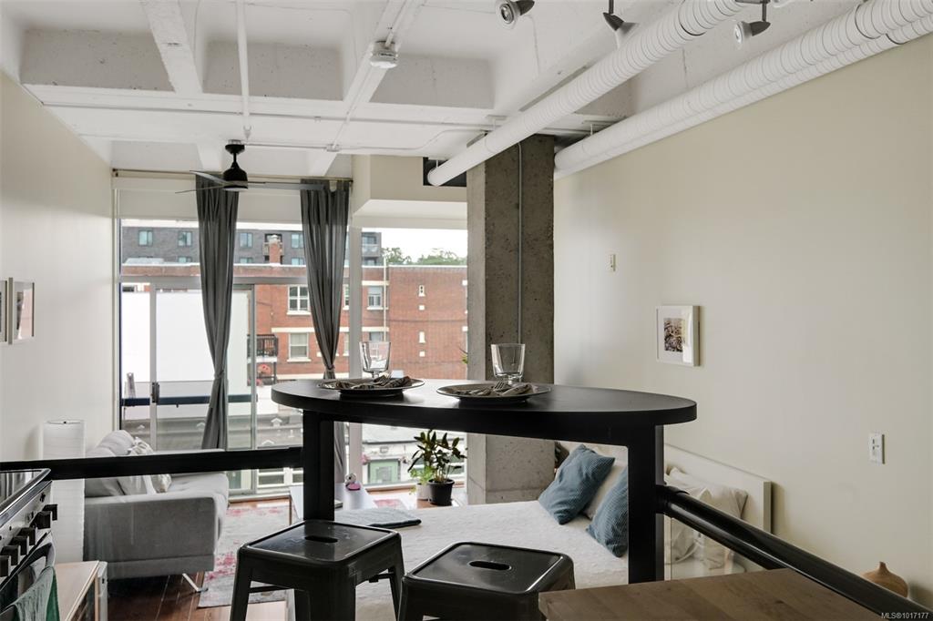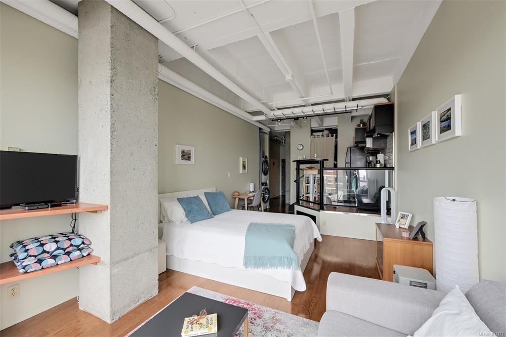 Welcome to The Mosaic, a sought-after concrete & steel building offering an exceptional blend of style & affordability in an ideal downtown location that's close to cafes, restaurants & shopping. This east-facing studio condo is flooded with beautiful morning light thanks to its floor-to-ceiling windows. The space is thoughtfully updated with new motorized blinds for easy light control, newer washer/dryer & new electric stove. Storage is maximized with a sleek, custom wardrobe solution along with an extra s...