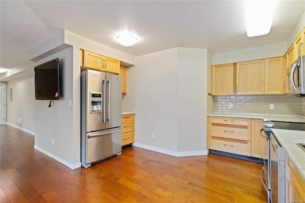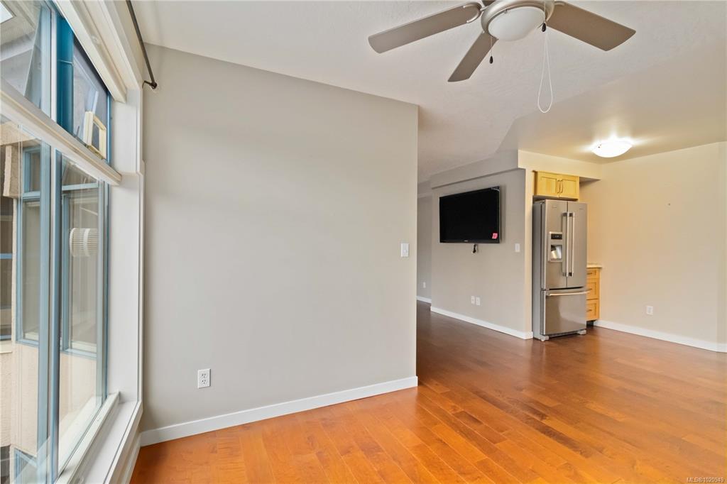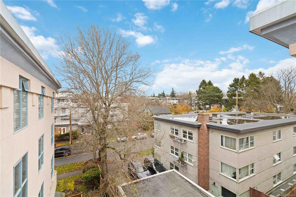 This bright top floor one bedroom one bathroom condo offers an ideal opportunity to live steps from Cook Street Village in one of Victoria’s most walkable neighbourhoods. The home has been carefully updated with hardwood floors, modern paint and an inviting kitchen that features custom cabinetry, stainless steel appliances and a cozy eating nook with treed views. The generous living and dining area is anchored by a gas fireplace that provides year round comfort and is included in the strata fees. The spacio...