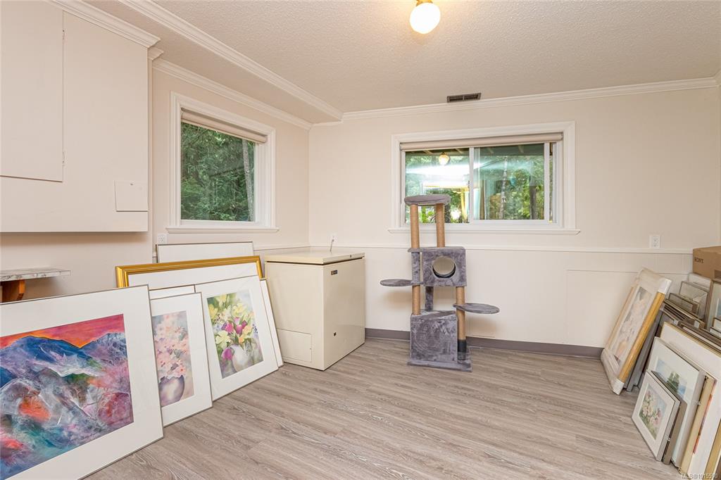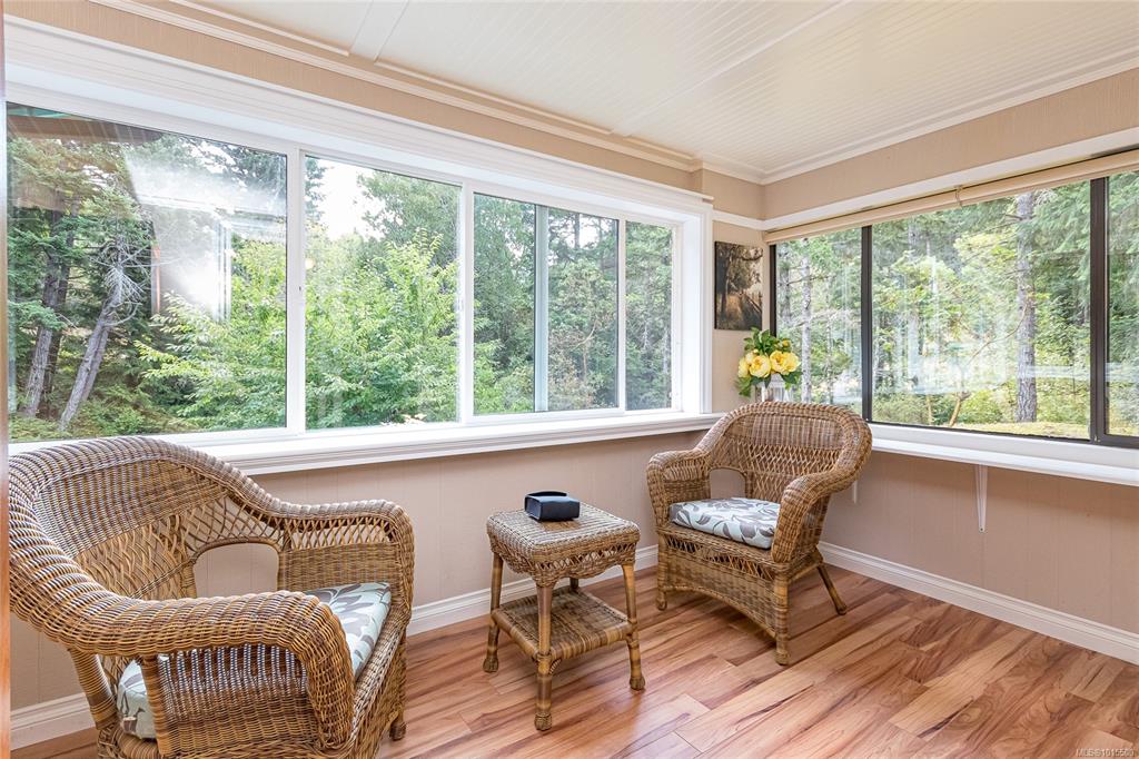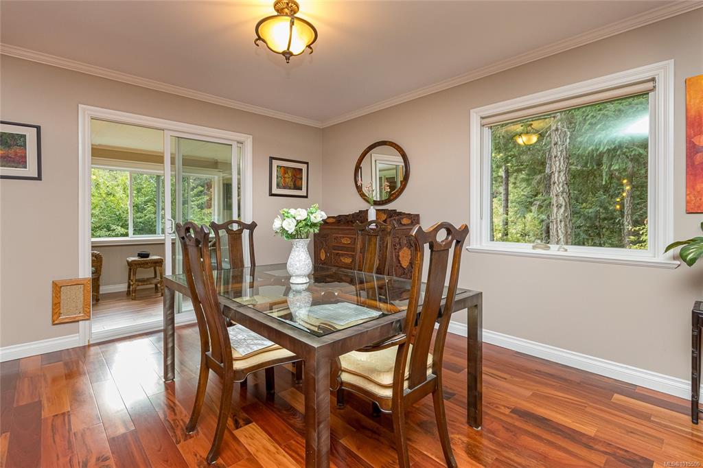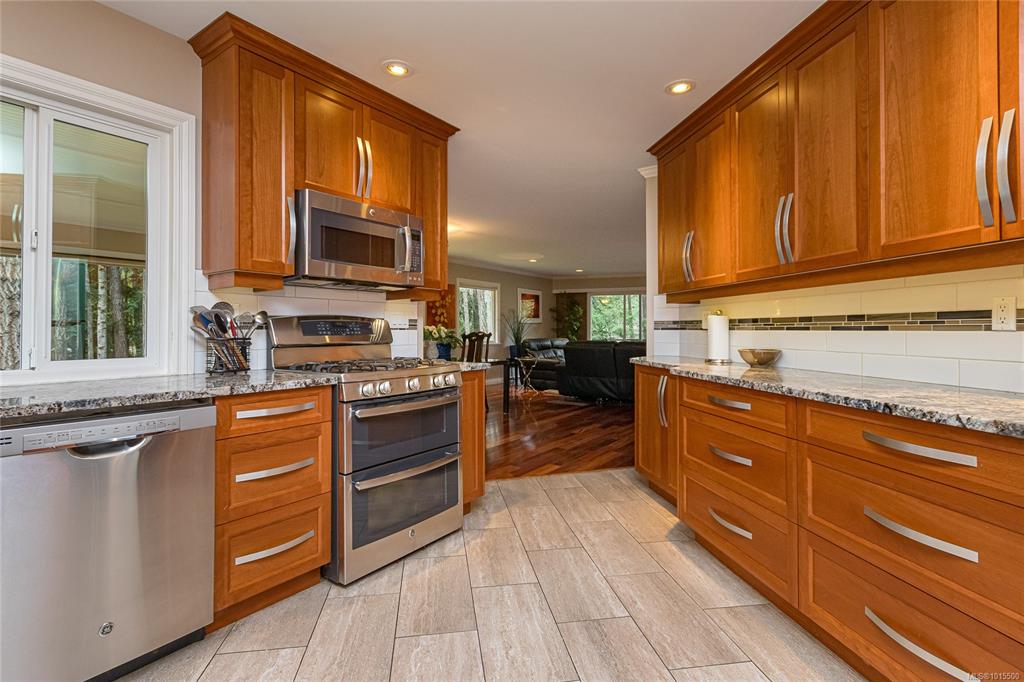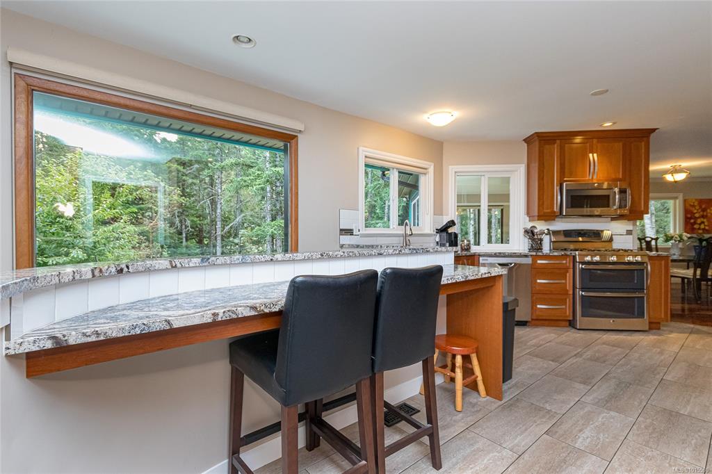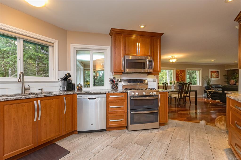 Welcome to 1074 Glen Forest Way. Located in Metchosin on a flat, private .95 acres of west coast paradise. This 1973 design has been meticulously updated and maintained. Gorgeous tiger flooring throughout the main floor. Large living room with rock-faced propane fireplace, formal dining room, plus beautiful custom kitchen with Cherrywood cabinets and granite counter tops with an eating area overlooking the flat back yard and concrete patio area complete with huge 4' bell grinder for a fire pit. Primary bedr...