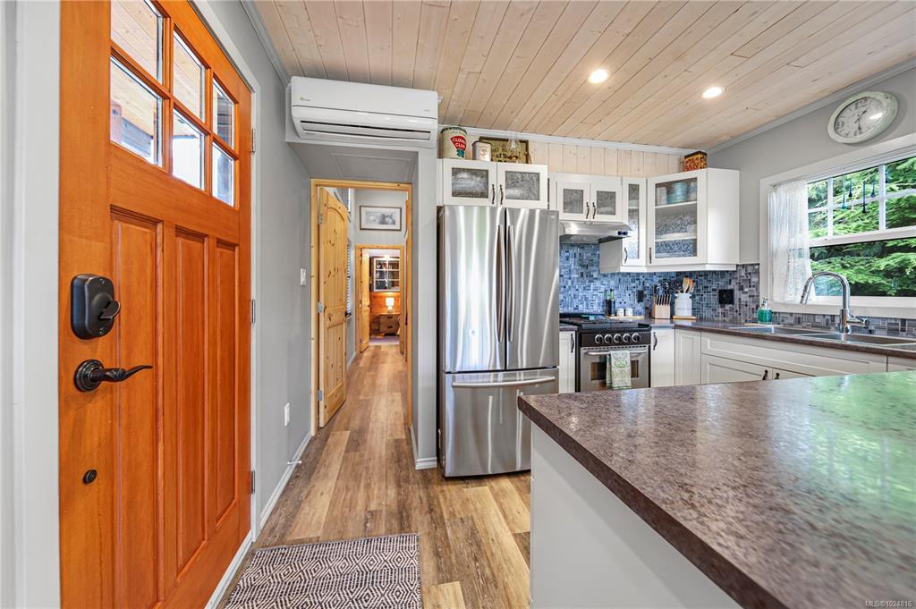 Looking for a vacation property that offers forest views, lake views & beach access? Look no further! Opportunity to buy a furnished vacation home at Great Central Lake, on your own strata lot (no pad fees or leases here!) - pack your bags & bring the boat (buyer to verify moorage availability)! This end lot has no direct neighbors & includes the park model & shed, plus RV parking - perfect for 2 families or multi-generational vacationing. The home offers a bedroom, full bathroom with a tub, plus a loft spa...