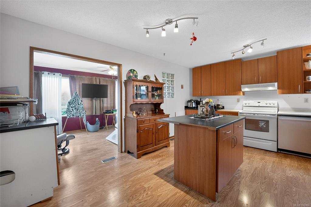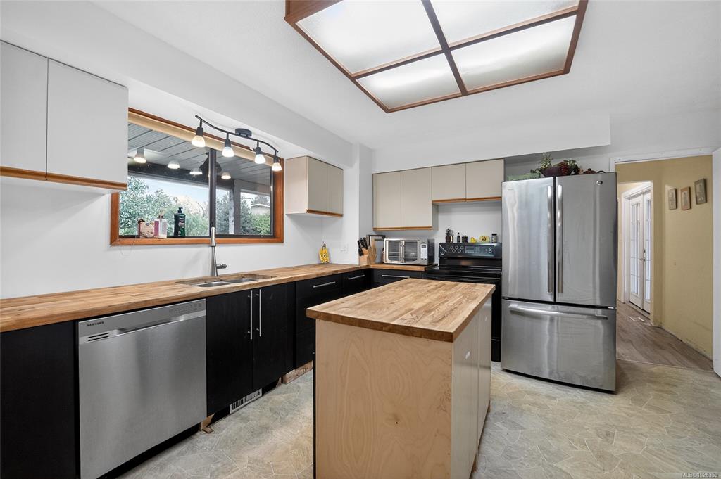 This bright Saltair home, just two blocks from the beach, offers coastal living with incredible versatility. Enjoy ocean views from the upper patio, accessible from both the primary bedroom and sunroom. Thoughtful features include oak hardwood in the primary, a spa-inspired ensuite with soaker tub, a cozy brick-accented woodstove, cedar details, and a spacious living room with charming window seat. The updated country kitchen shines with new appliances and a wood-topped island. Two kitchens provide excellen...