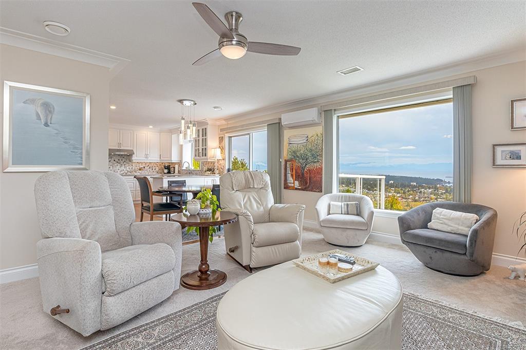 Enjoy breathtaking, panoramic views of Departure Bay, Salish Sea, downtown Nanaimo & coastal mountains. Fully renovated in 2020 this home features a spacious primary bedroom & beautiful ensuite with walk-in shower. Two additional bedrooms & a four piece family bath. Entertain with ease in the formal dining room featuring a fireplace, cozy living room with 2nd electric fireplace & great kitchen including stone countertops & built-in stainless steel appliances. Closed-in mudroom & walk-in pantry. EV Charger &...
