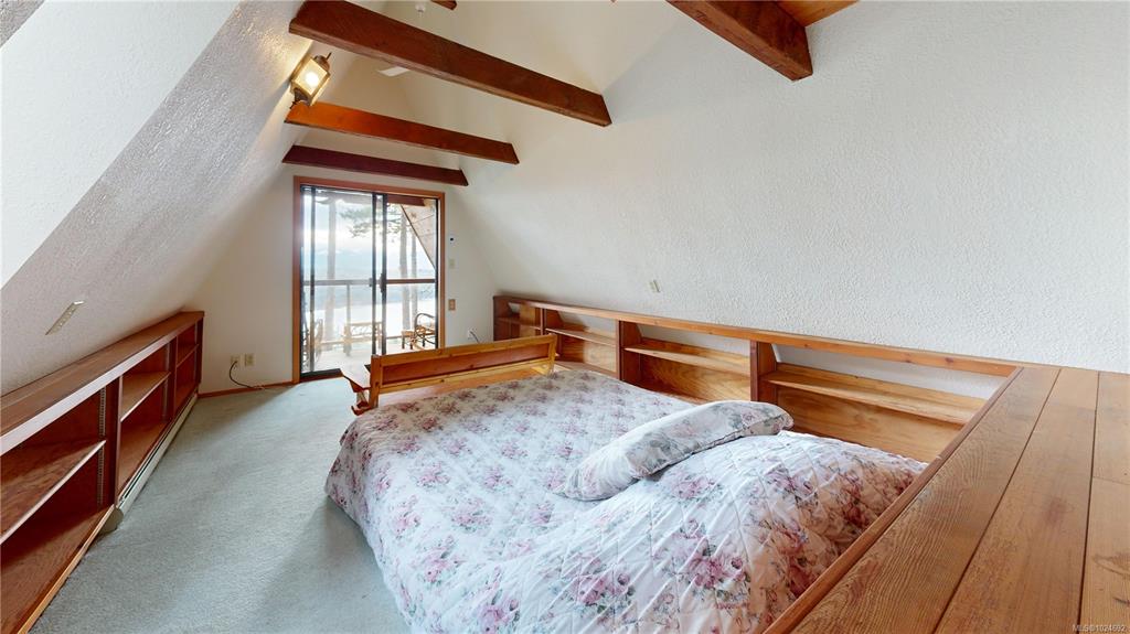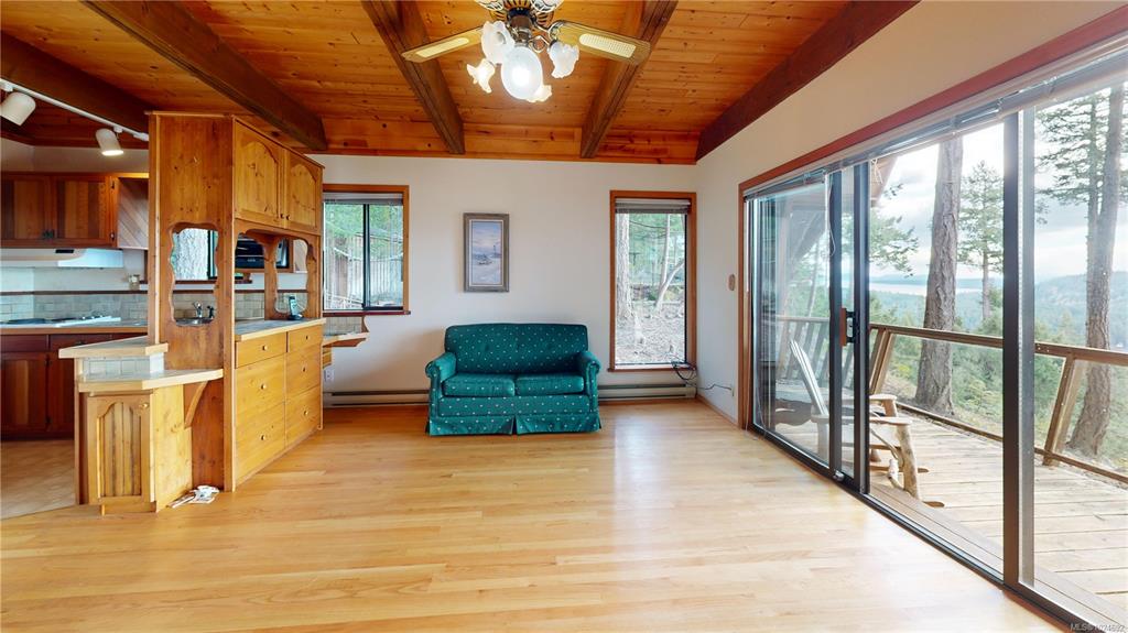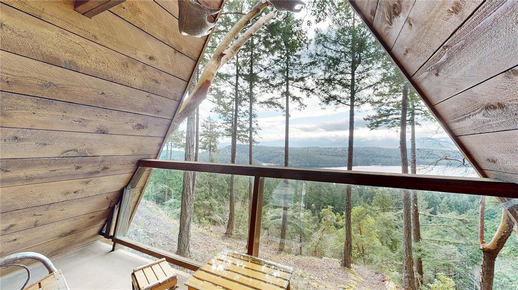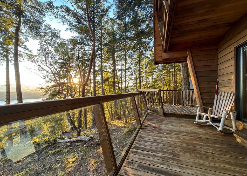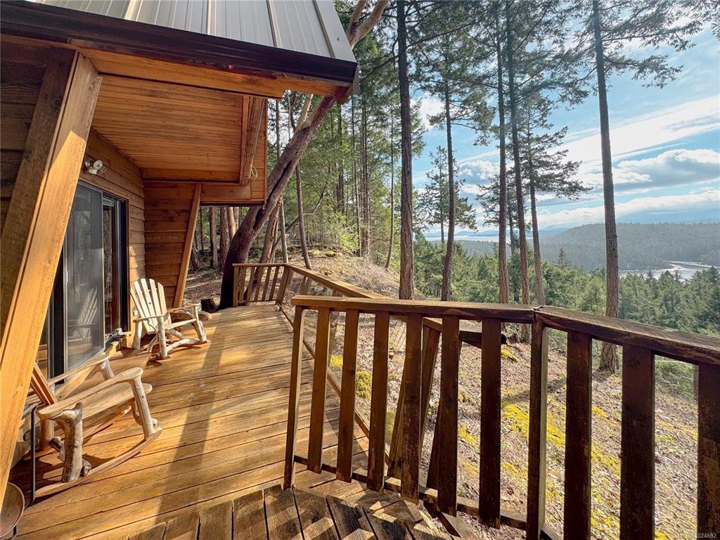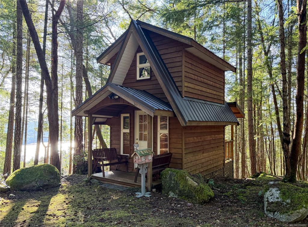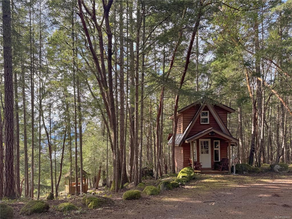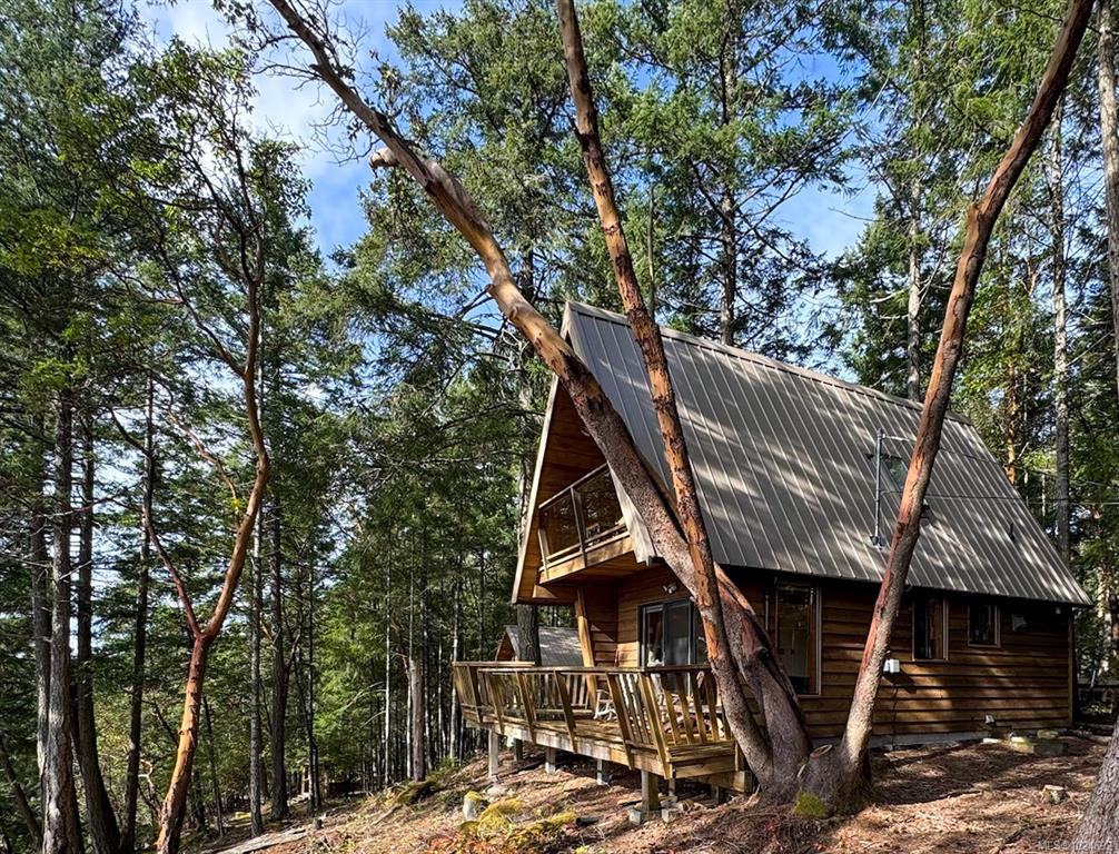 Stunning ocean and mountain views are enjoyed from this private 5.18-acre Gabriola property. Tucked into the woods, the charming 676 sq ft wood-sided cottage with a metal roof offers a beautiful retreat with a southwest-facing deck perfectly positioned to take in the expansive views across the water and islands. Inside, the home has a warm, inviting feel with wood ceilings and beams, rockwork around the woodstove, wood cabinetry, and a 3-piece bath on the main level. Upstairs, the primary bedroom offers v...