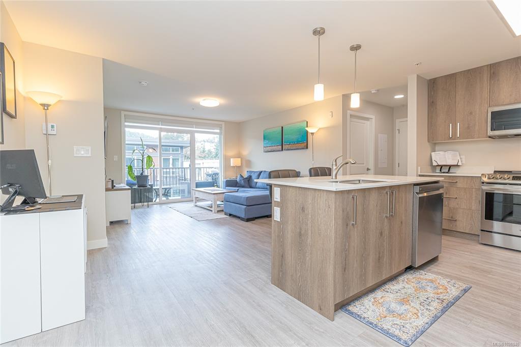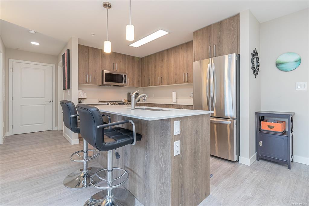Discover Thetis Lakeside! Highly desirable development (2019) perfectly positioned just steps from expansive green space. This bright 2 bed/2 bath unit features a spacious & split-bedroom layout & a new (Feb 2026) spa-inspired ceramic tile walk-in shower in the primary ensuite. The open-concept main living area includes a kitchen w/ a stone countertop central island, stainless steel appliances & plenty of cabinets & prep space. Oversized windows fill the living area w/ natural light & a sun-soaked west-faci...