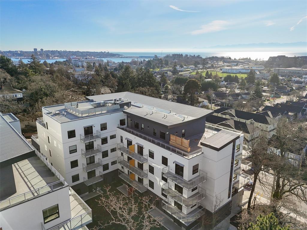Welcome to The Proxima — a bright and stylish 2-bedroom, 1-bath corner unit featuring a wrap-around balcony with views of the city, the Olympic Mountains, and the ocean. Expansive windows on two sides flood the home with natural light, creating an airy and inviting atmosphere. The modern kitchen is equipped with KitchenAid appliance package, quartz countertops, and a spacious island perfect for entertaining. The living area offers warmth and comfort with an electric fireplace, with 2 bedrooms, and a four-pi...