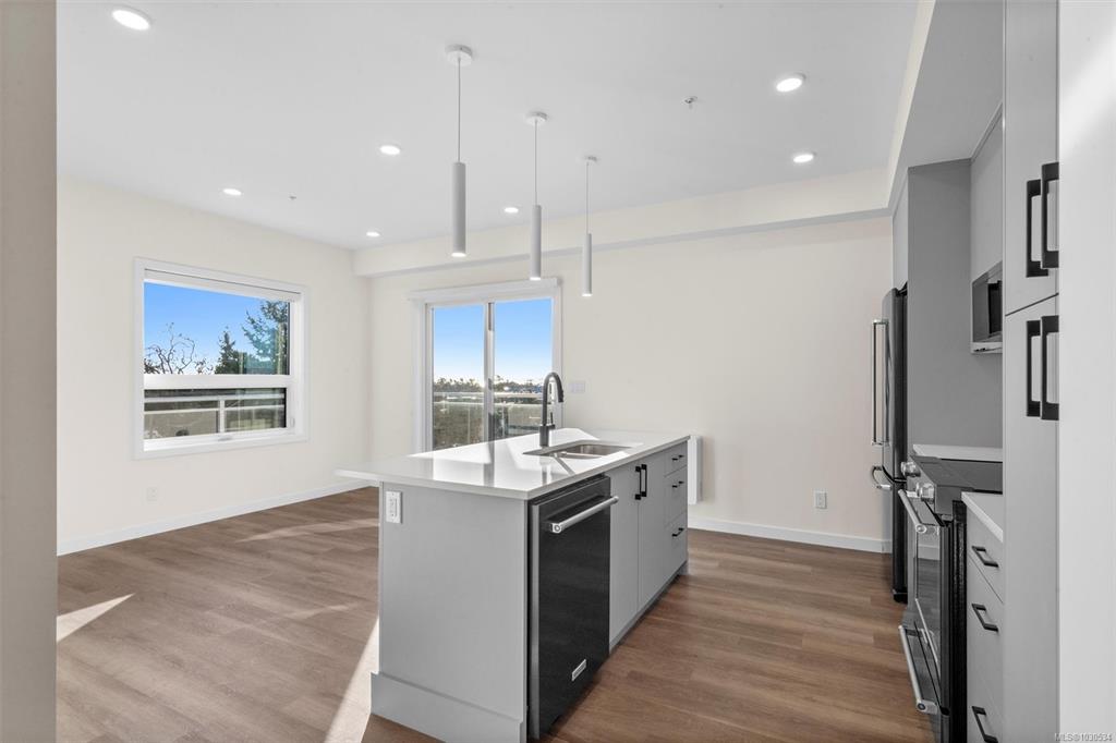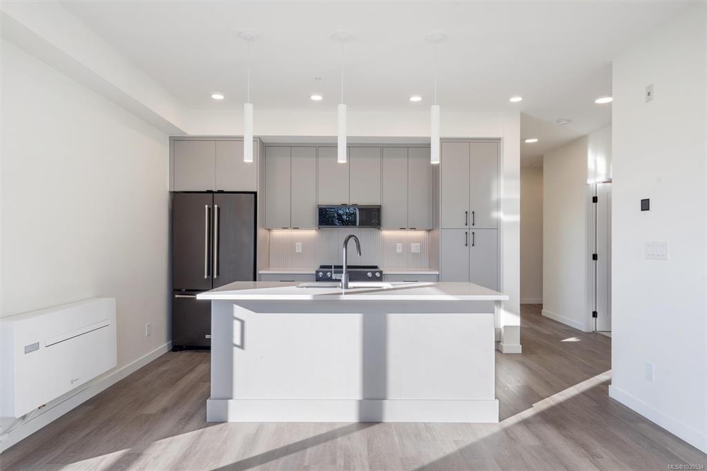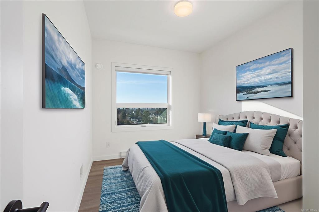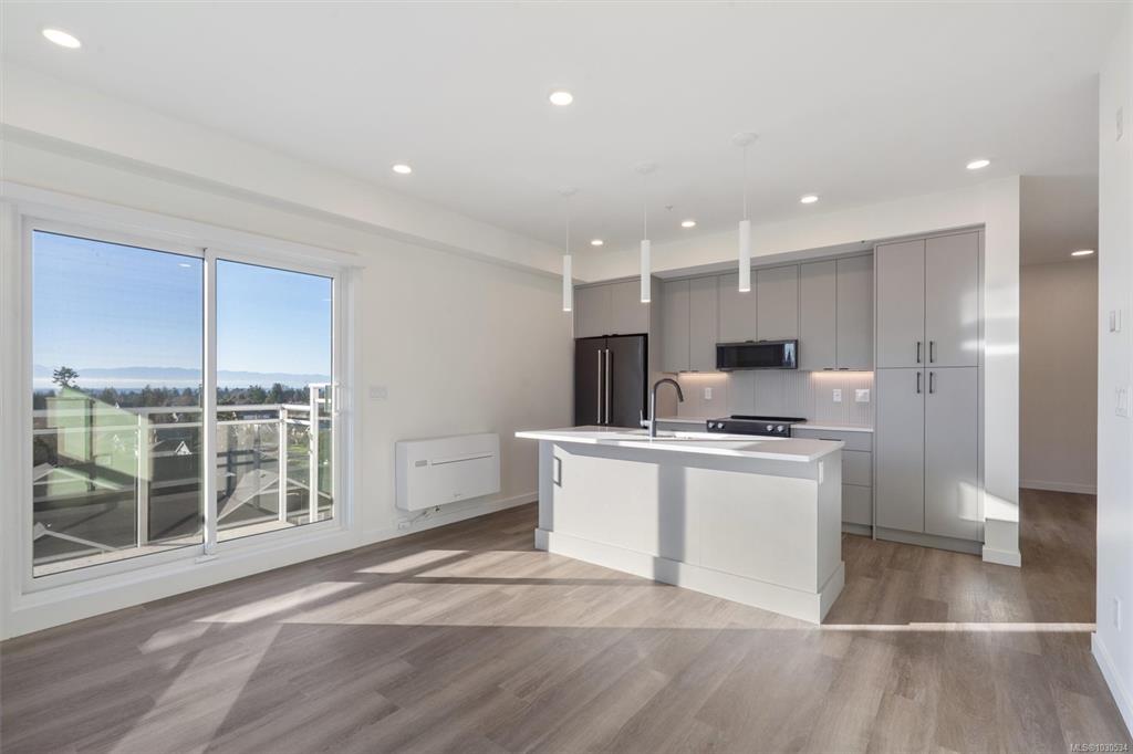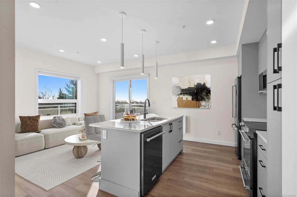 Welcome to The Proxima — a bright and stylish new 2-bedroom, 1-bath corner unit featuring a wrap-around balcony with views of the Olympic Mountains, and the ocean. Expansive windows on two sides flood the home with natural light, creating an airy and inviting atmosphere. The modern kitchen is equipped with KitchenAid appliance package, quartz countertops, and a spacious island perfect for entertaining. The living area offers warmth and comfort with an electric fireplace, with 2 bedrooms, and a four-piece ba...