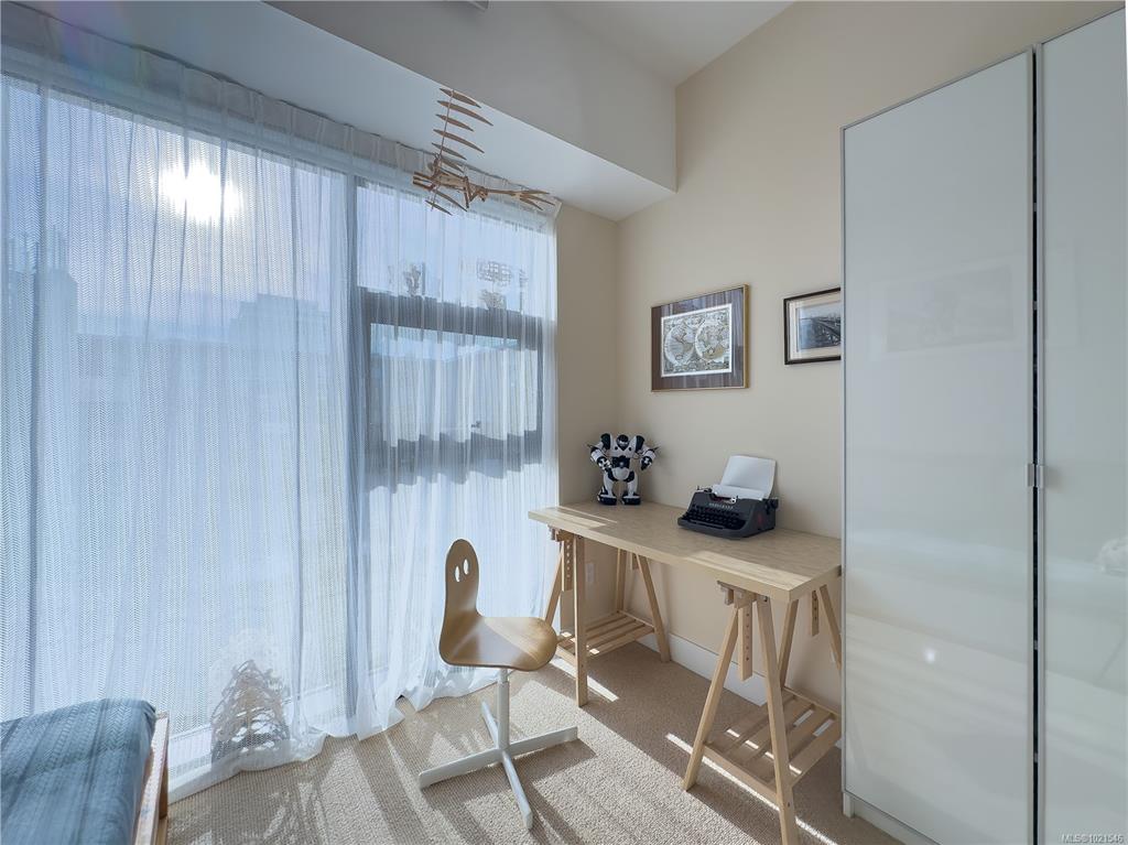 Welcome to one of the best-situated homes in The Wade - a bright, quiet, south-facing unit overlooking the landscaped inner courtyard. Floor-to-ceiling windows in every room bring in natural light all day, while the thoughtful layout offers separated bedrooms and two well-finished bathrooms with heated tile floors. The modern kitchen features an artisan concrete island, quality appliances, and sleek cabinetry. Enjoy a sunny balcony with natural gas, electrical, and water hookups. Steel & concrete constructi...