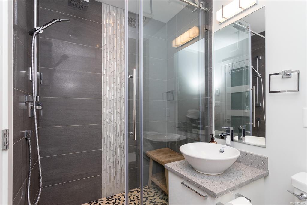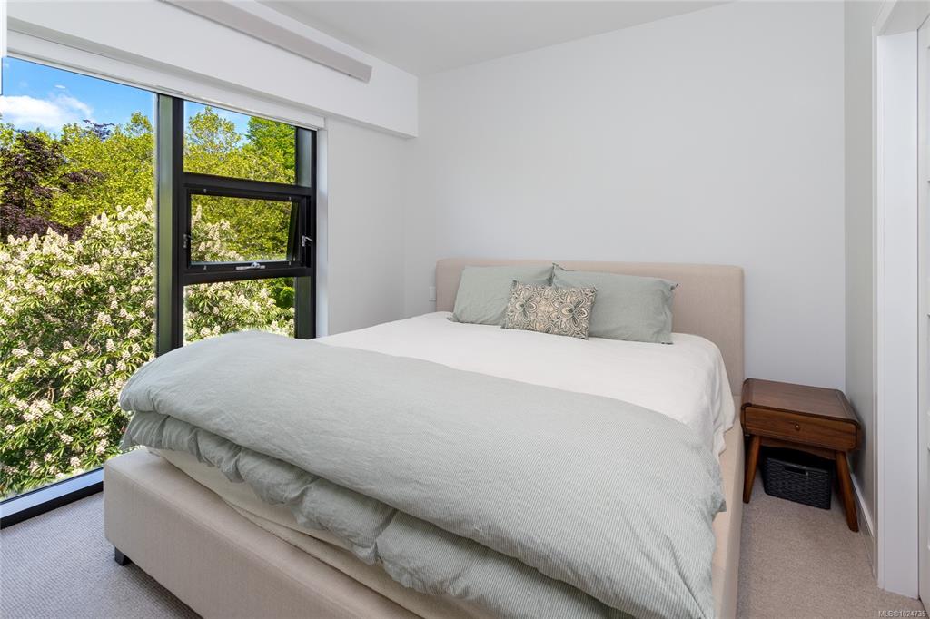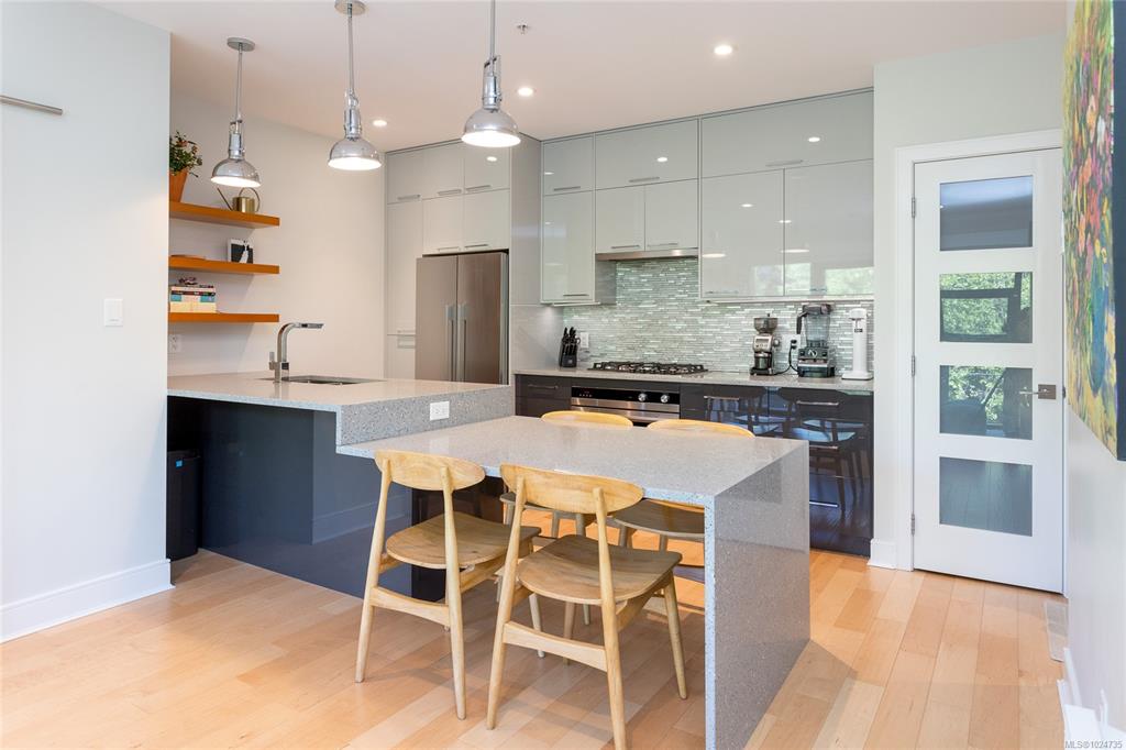 Welcome to The Wade—a sophisticated, 2021-built low-rise steel and concrete building that combines modern design with lasting quality. This top-floor corner unit offers over 750 sqft. of bright, thoughtfully designed living space with large windows & serene park views. Open-concept layout features a gourmet kitchen with quartz countertops, stainless steel appliances including a gas cooktop, two toned full-height modern cabinetry & large island with an eating bar—perfect for entertaining. Primary bedroom inc...