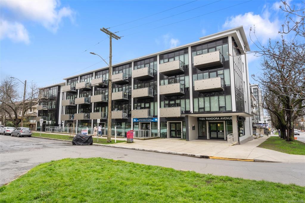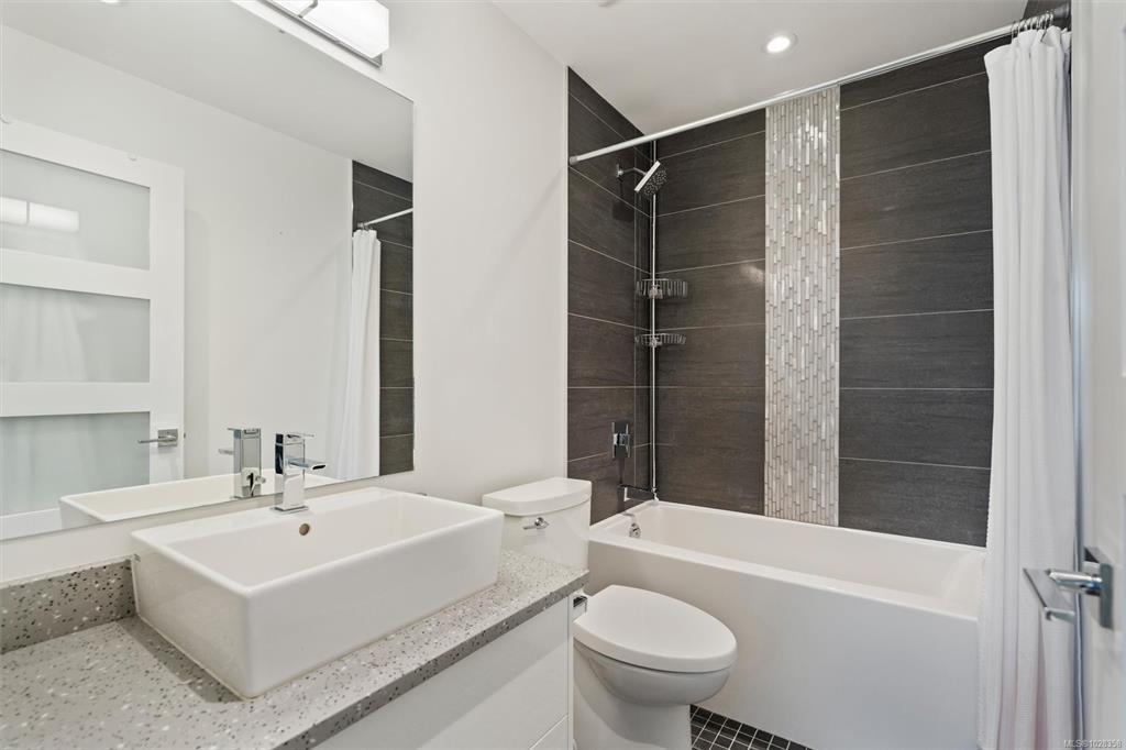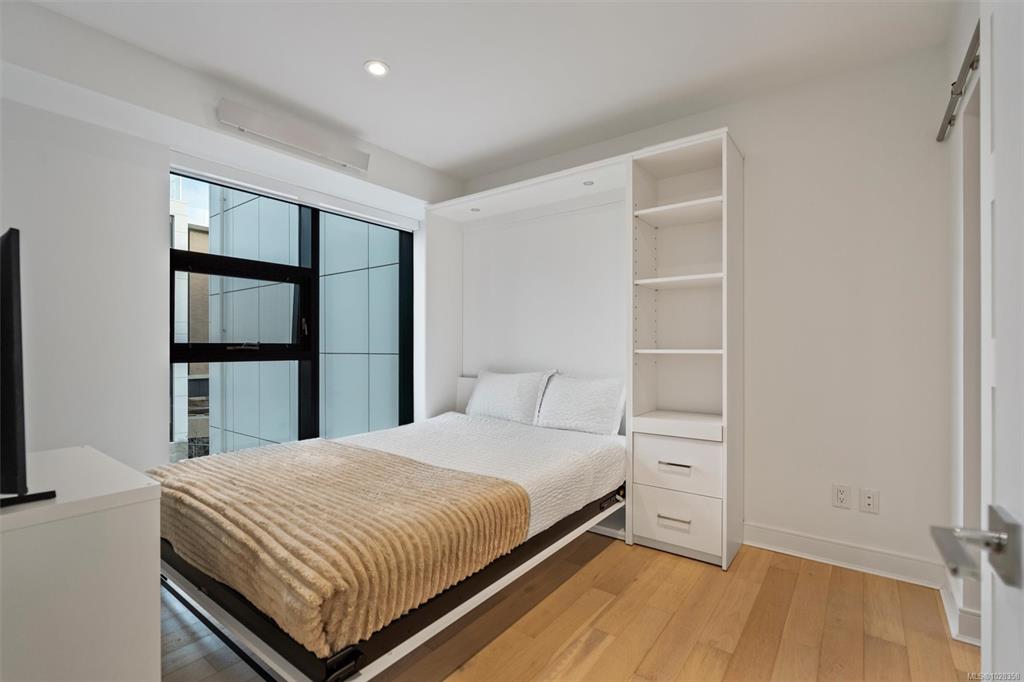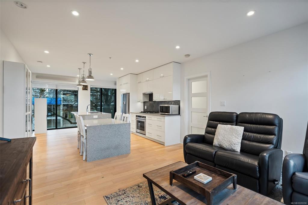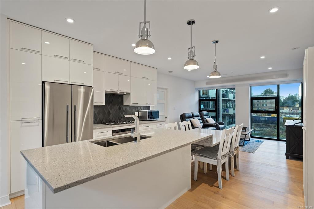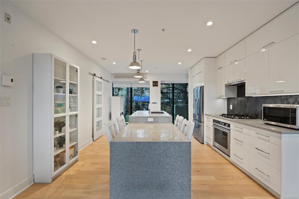 Welcome to The Wade, a 2021 low-rise steel & concrete building in downtown Victoria. This rare 2 BED, 3 BATH + DEN unit offers over 1,200 SqFt of modern living space with high quality finishes. Inside, you’ll find beautiful engineered hardwood flooring and a thoughtfully designed layout highlighted by a long gallery-style hallway—perfect for displaying feature artwork as it leads from the front entrance to the main living area. The contemporary kitchen features premium Fisher & Paykel appliances, sleek cabi...