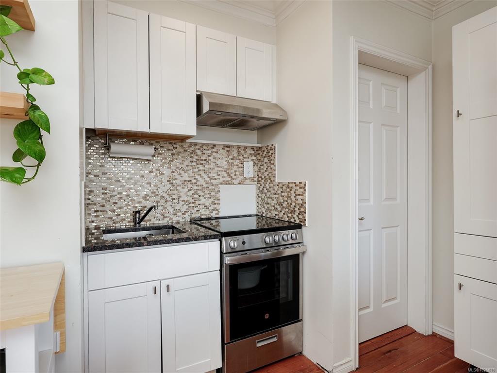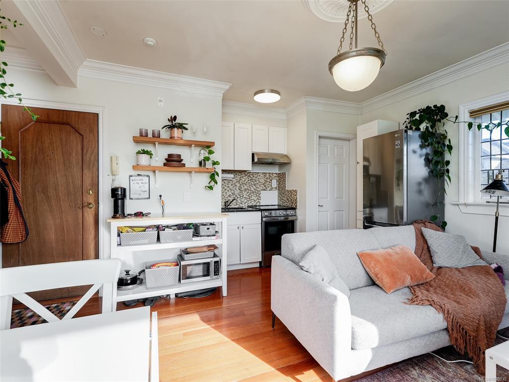 Charming character conversion suite in a beautiful 1909 home tastefully restored into 7 unique suites in 1996. This is a delightful 1 bedroom,1 bathroom sun filled, corner unit where light pours in from 3 sides to create a bright and breezy ambience. With lovely outlooks from all rooms, features include cozy gas fireplace in the living room, open plan kitchen with stainless steel appliances, fir floors throughout, stained glass windows and crown mouldings. Laundry is shared with one other unit plus there's ...