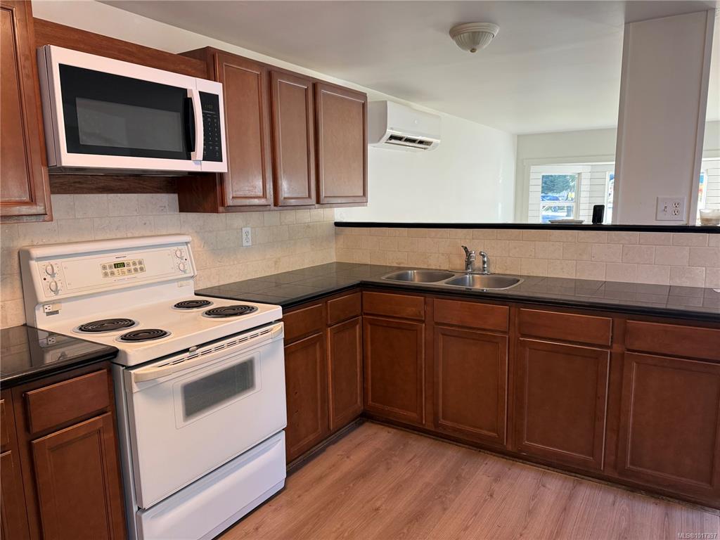 Experience comfort and modern living in this beautifully renovated 2-bedroom + den, 1-bathroom home nestled in the peaceful Cedar Creek Mobile Park, Mill Bay. Surrounded by trees, this spacious 980 sqft single-level residence offers both privacy and a welcoming sense of space. Every detail has been thoughtfully updated — from the complete removal of poly-B plumbing to the addition of a new heat pump (2023), a cozy pellet stove (2015), stylish wood-toned cabinetry, new laminate flooring, and elegant traverti...