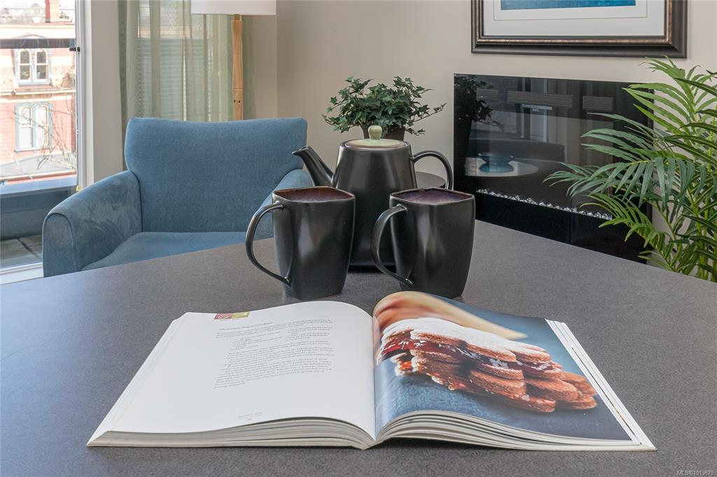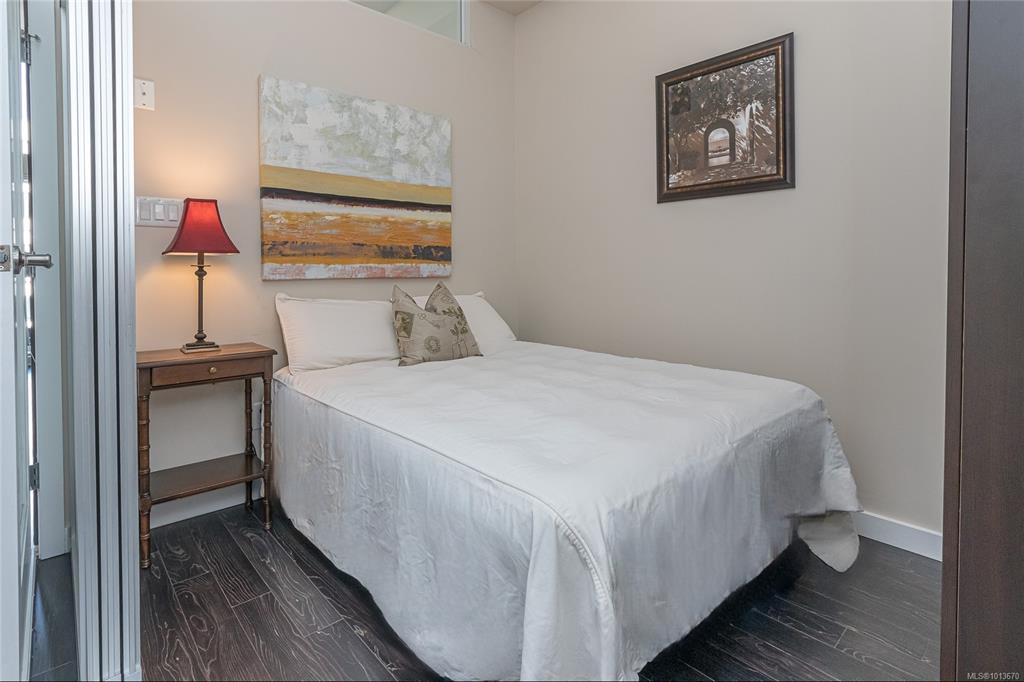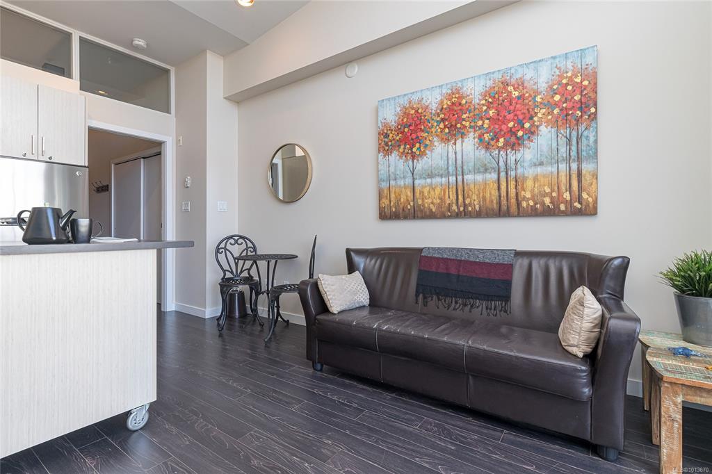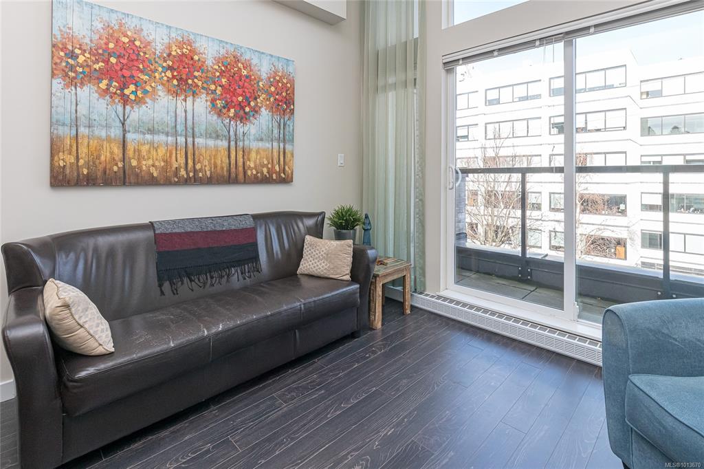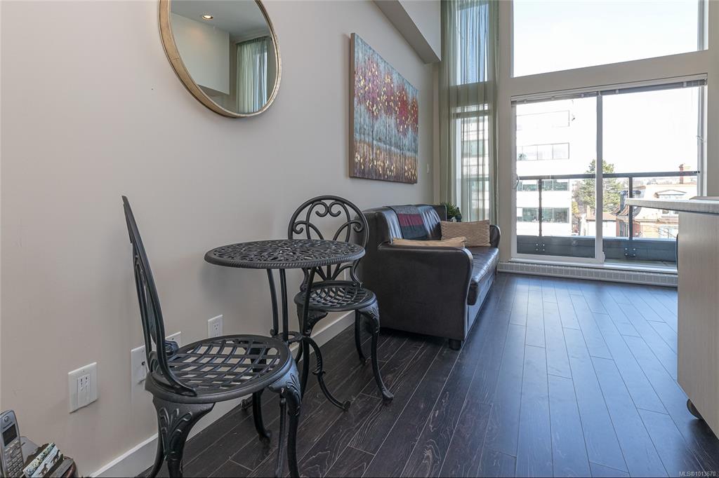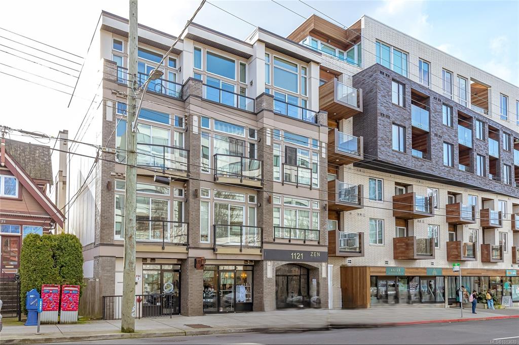 Fantastic bright one bedroom condo with city views! Unique top floor unit with 11 foot ceilings, floor to ceiling windows. Fabulous roof top deck with 360 views, lounge seating and BBQ. Access to unit is via elevator to 4th floor, opening to open air hallway and private unit entrance. Kitchen includes stainless stove, fridge, dishwasher, microwave and plenty of cupboards. Features include moveable island, electric fireplace, in unit washer and dryer, blinds and sliding glass door to balcony."The Zen" build...