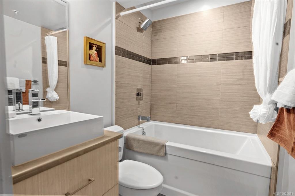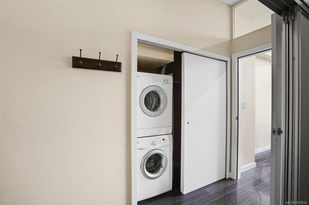 Bright top-floor one-bedroom condo with city views and soaring 11-foot ceilings. Floor-to-ceiling windows fill the space with natural light, creating an open, airy feel. Access via elevator to the fourth floor, leading to an open-air hallway and private entrance. The kitchen features stainless steel appliances, ample cabinetry, and a moveable island. Additional highlights include an electric fireplace, in-suite laundry, blinds, and a sliding glass door to a private balcony. Enjoy a stunning rooftop patio wi...